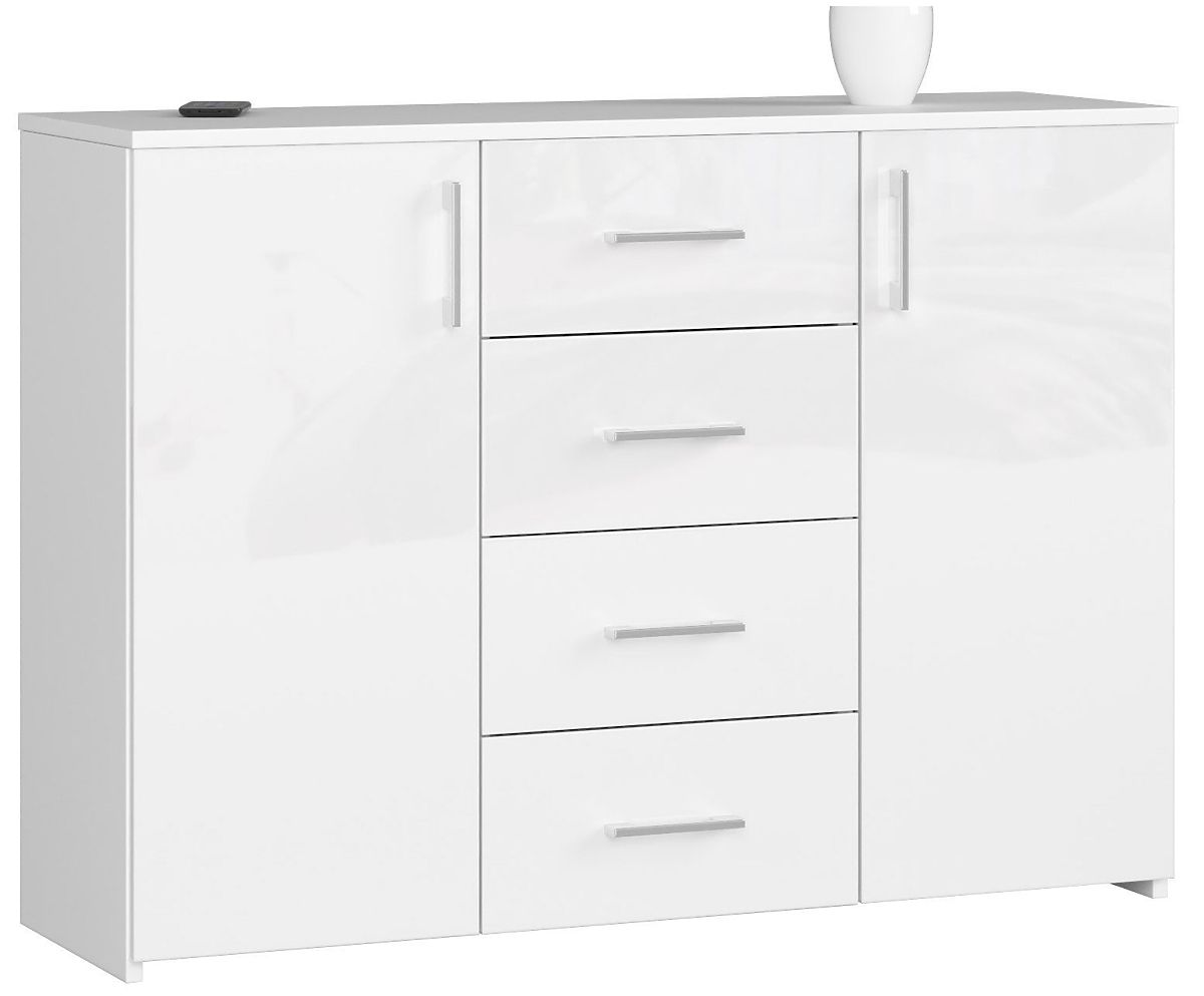 Komoda K45 s bijelim sjajem i četiri ladice. .. više
