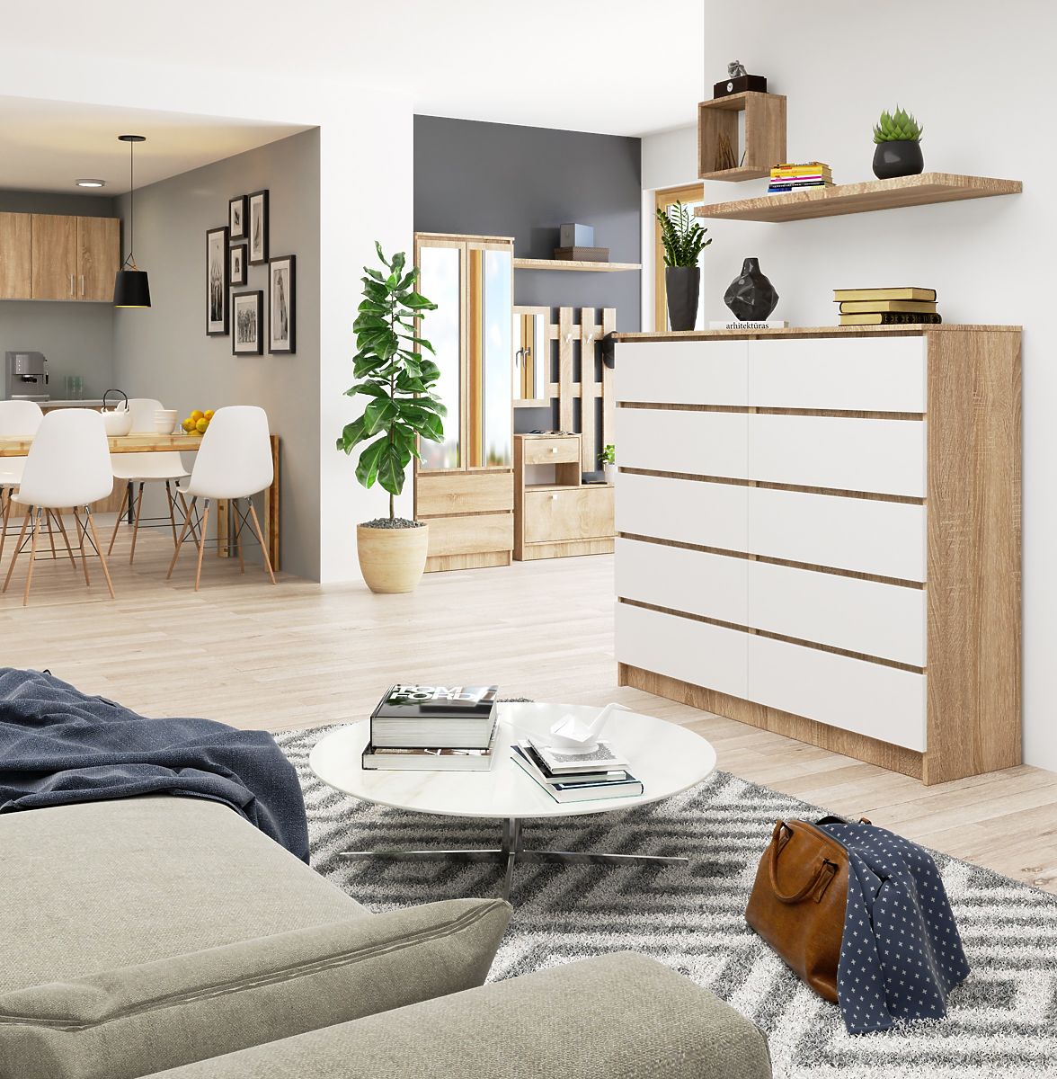 Komoda s 10 ladica u kombinaciji hrasta sonoma i bijele boje. .. više
