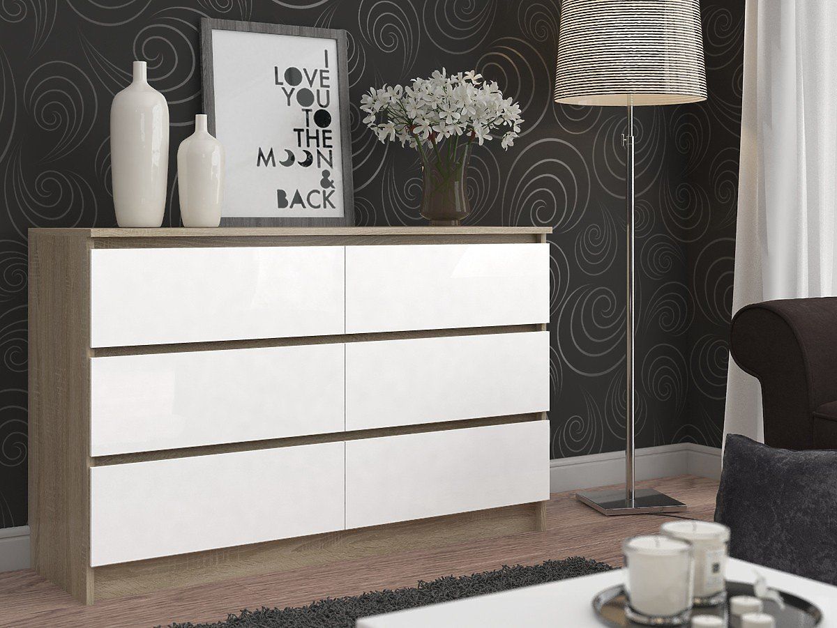 Komoda s 6 ladica u kombinaciji hrasta sonoma i bijele boje. .. više