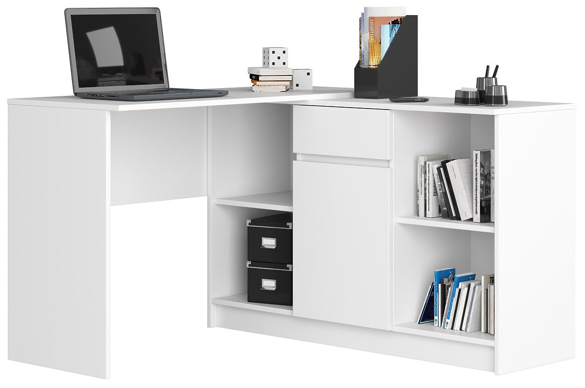 Komoda iz seta B-17 Bijela. Modularna konstrukcija komode omogućuje stvaranje seta kutnog stola dostupnog u našoj trgovini. Odlično funkcionira i kao samostalni komad namještaja.