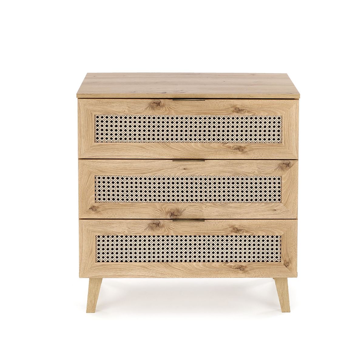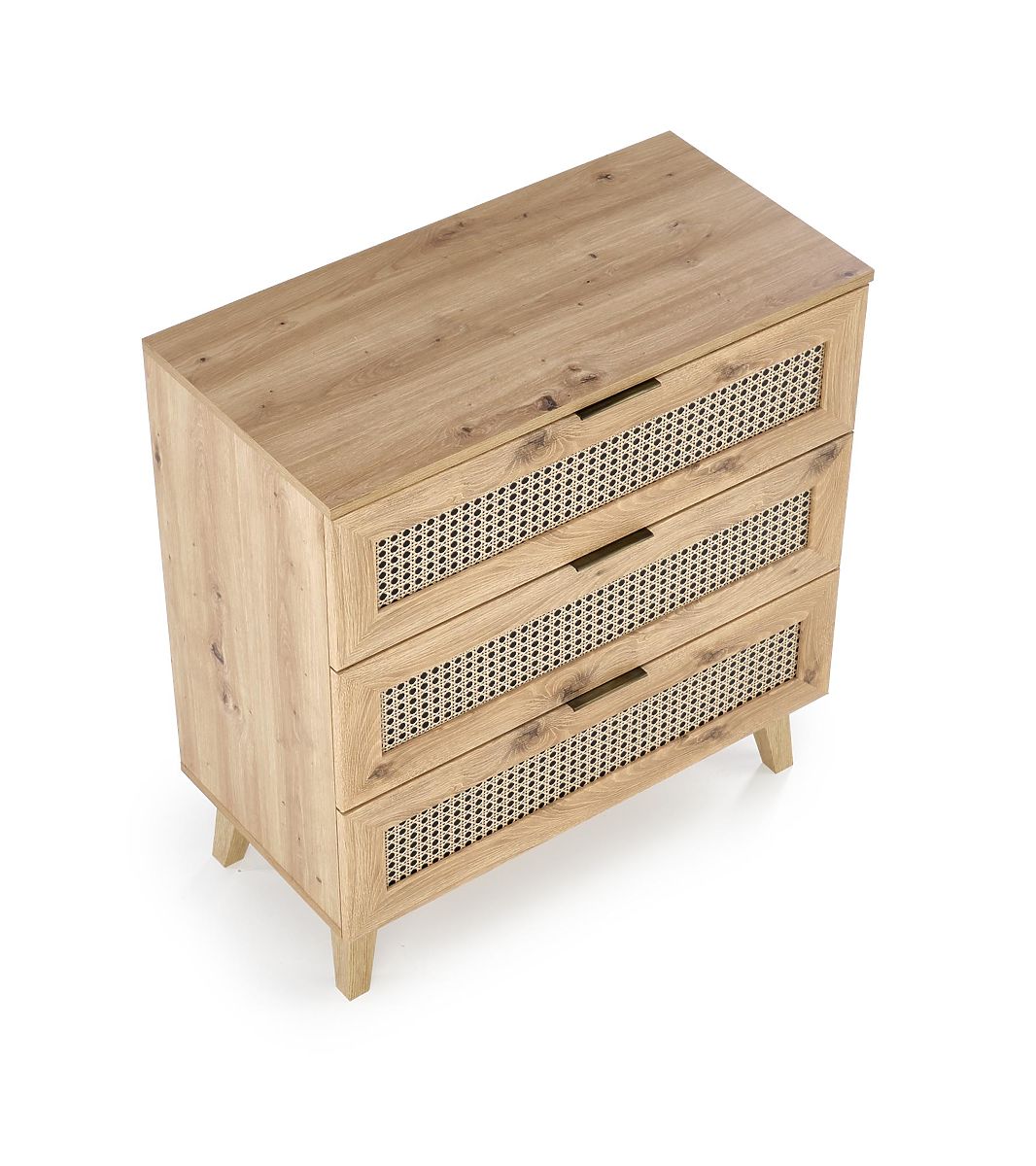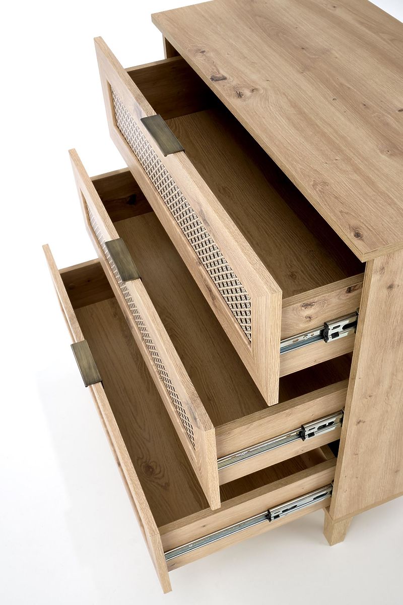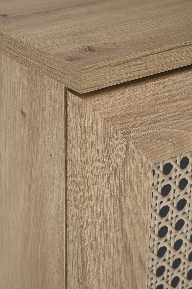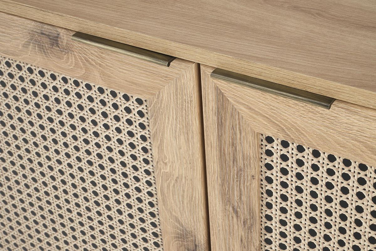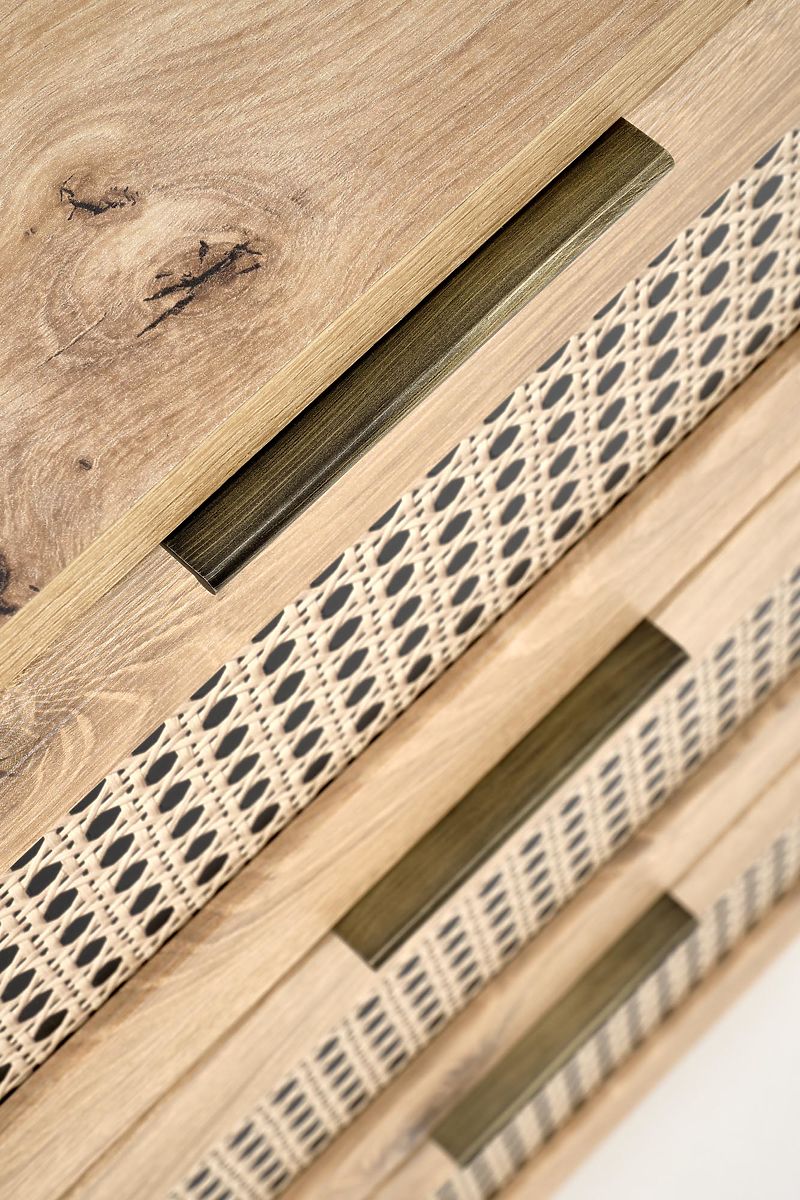 Dekor hrast artisan zajedno s modernim umetkom u uzorku bečke pletenice daje komodi jedinstveni boho štih koji odmah privlači pažnju.