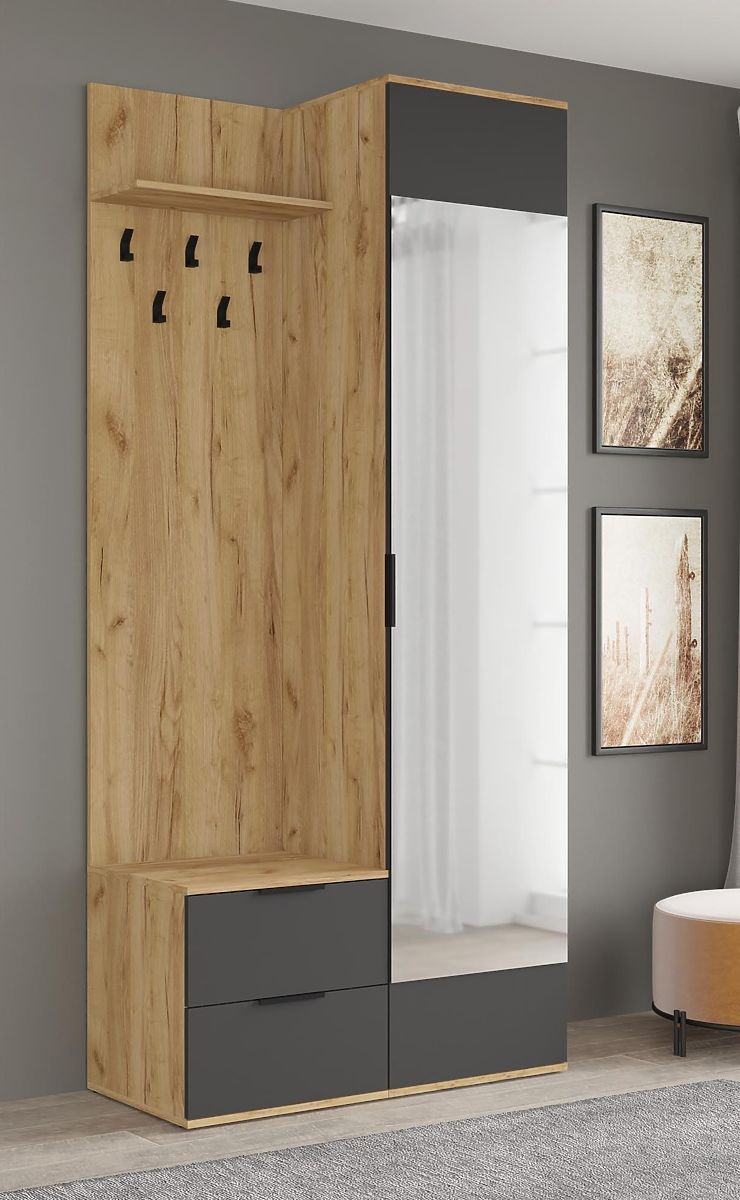 Predsoblje od zlatnog hrasta i antracita s ogledalom. .. više