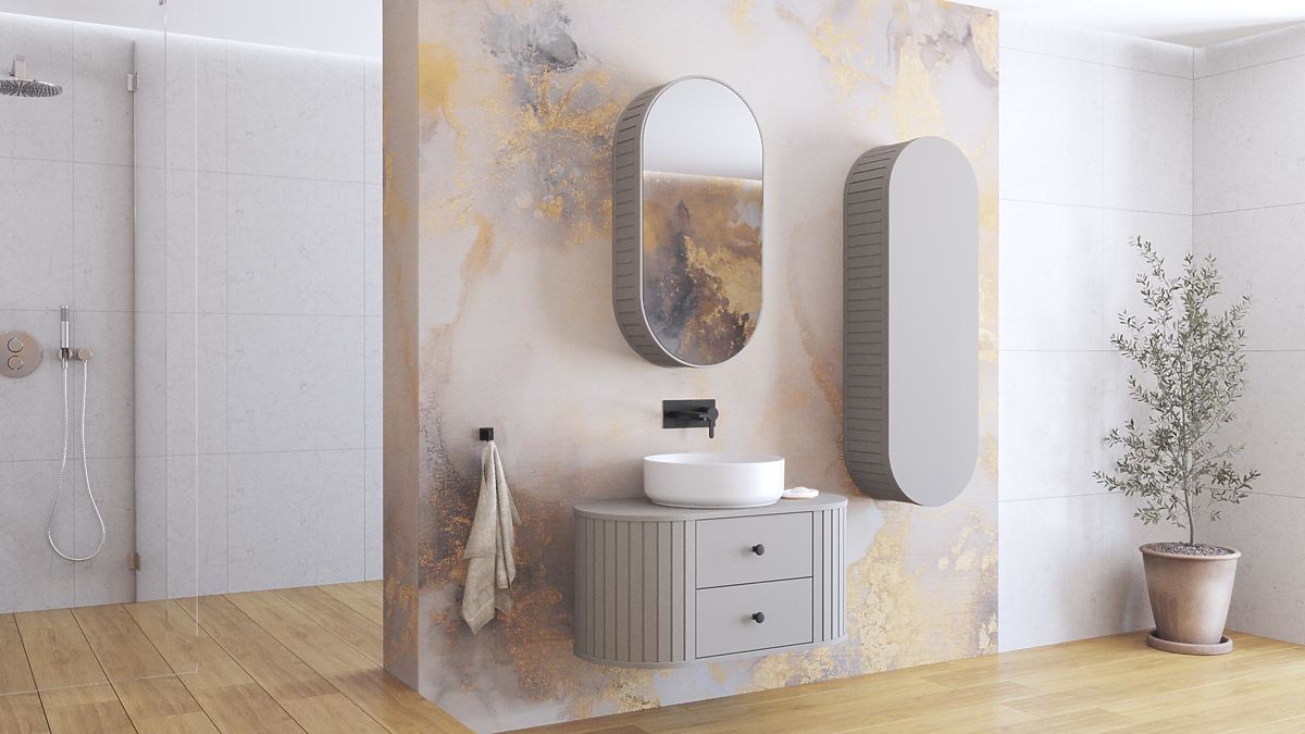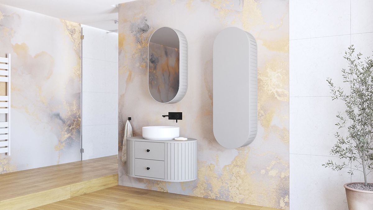 Ormarić s ogledalom u mat kašmiru, dimenzije 48/19/95 cm. .. više