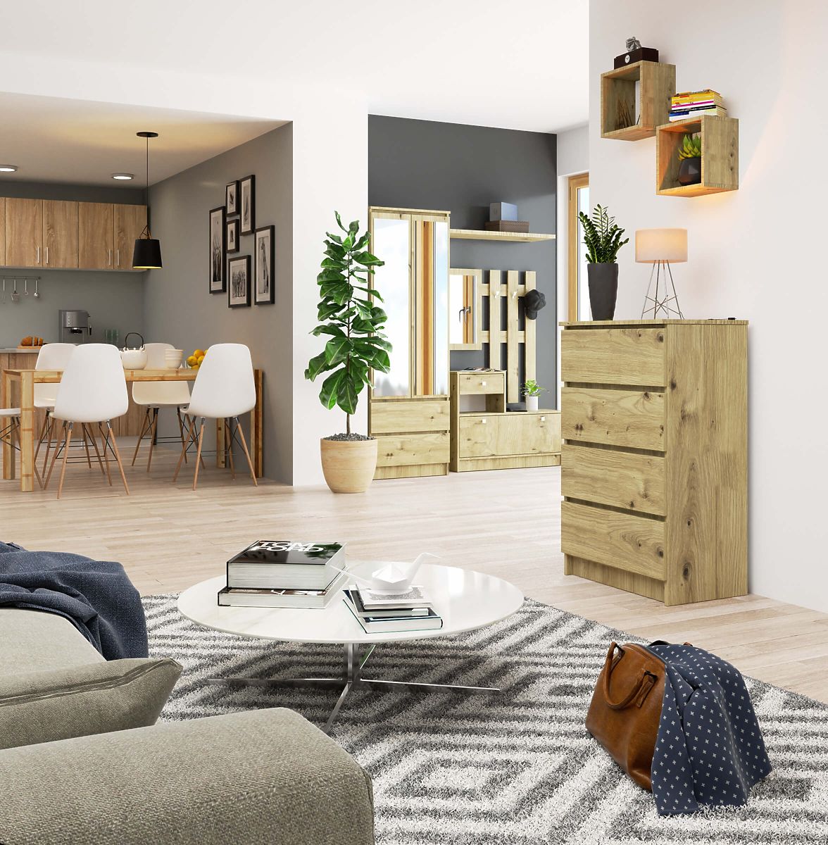 Komoda s 4 ladice u boji hrast Artisan, dimenzija 60x99x40 cm. .. više
