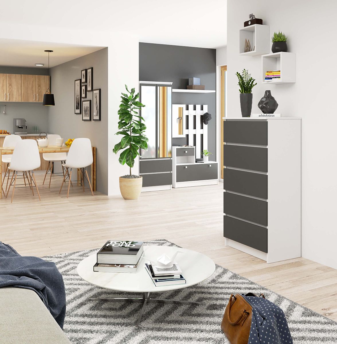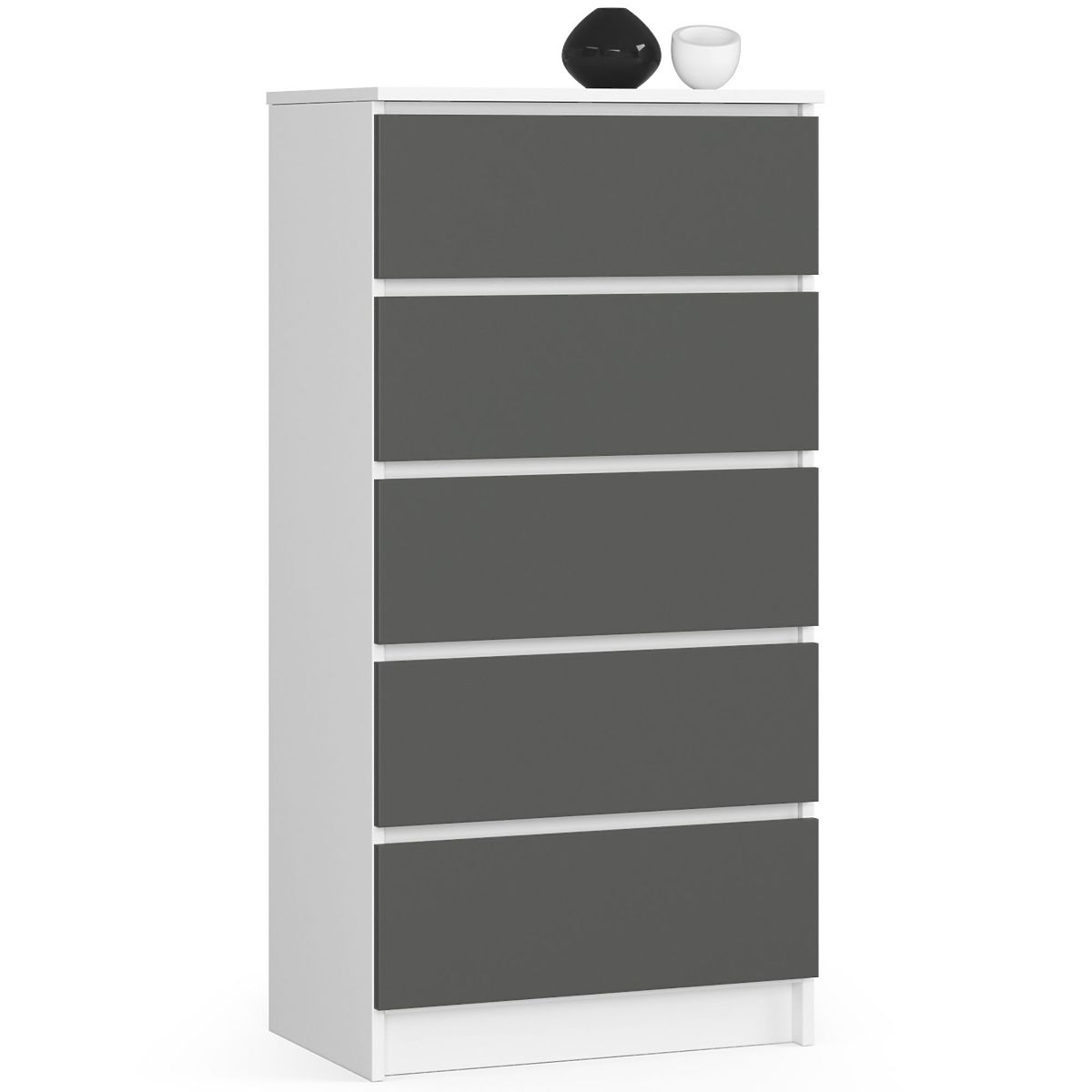 Komoda s 5 ladica u bijeloj i sivoj boji. .. više