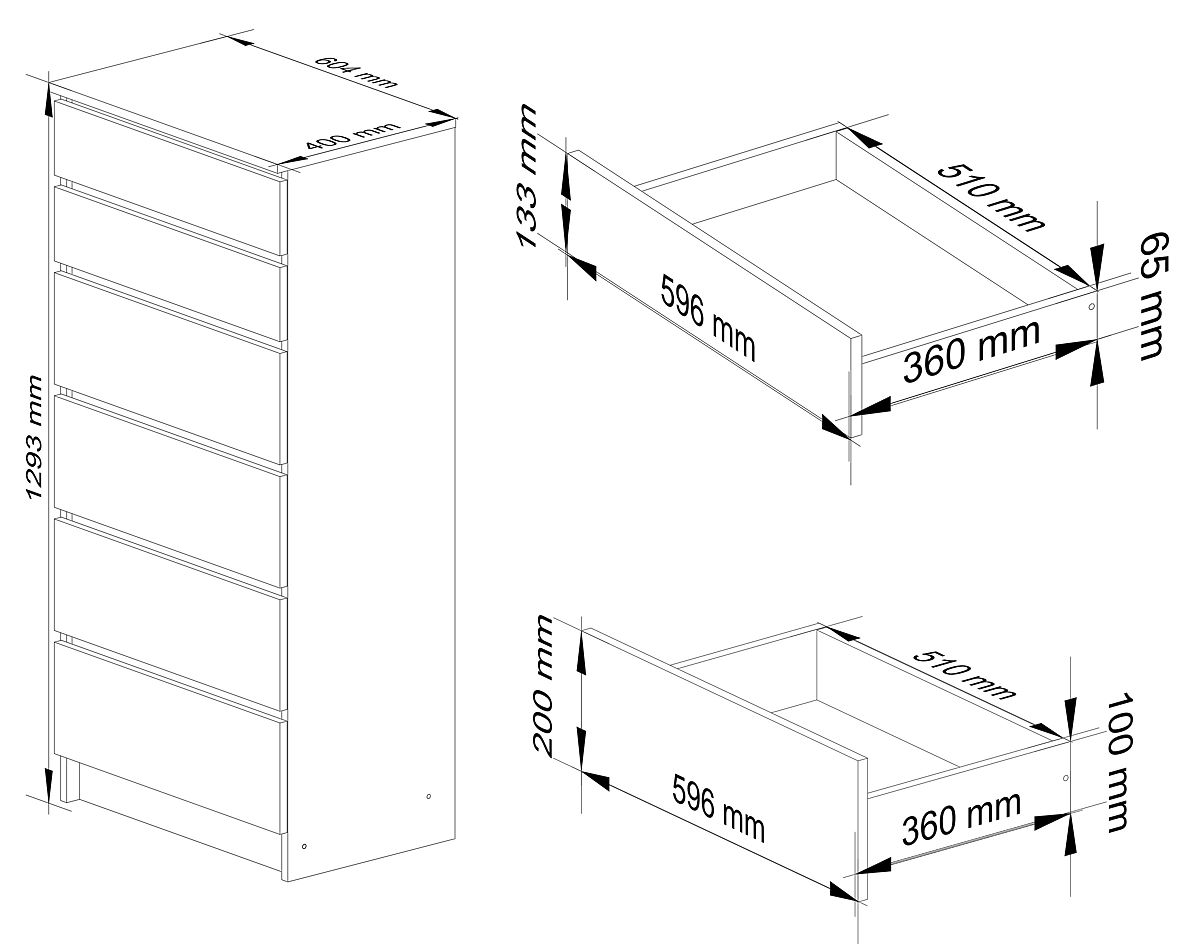 Elegantni prostrani i svijetli dnevni boravci također trebaju odgovarajući namještaj i dodatke. Za kupce koji traže komodu usklađenu u boji i kvaliteti za svoje interijere, pripremili smo izvrstan proizvod u potpunosti izrađen od laminirane ploče. Bijela komoda se odlično prezentira i prilagođava dizajnu ostalog namještaja. Ima 6 praktičnih ladica dubine do 40 centimetara, u koje se mogu smjestiti svi potrebni dodaci. Komoda je visoka 130 centimetara, što omogućuje postavljanje dodatnih dodataka ili televizijskog uređaja na njezinu površinu. Izdržljivi zidovi izrađeni su od debele ploče od 1,6 mm, koja osigurava odgovarajuće parametre čvrstoće. Rubovi komode dodatno su zaštićeni oblogom koja štiti namještaj od udaraca ili drugih mehaničkih oštećenja. Izvrsna boja i jednostavan praktičan izgled namještaja sigurno će omogućiti njegovo usklađivanje s drugim proizvodima u vašem stanu. Osim toga, komoda sadrži ormariće s ugrađenim kugličnim vodilicama, što znatno olakšava izvlačenje i zatvaranje pojedinih komora. Prodani proizvod isporučujemo u verziji za samostalnu montažu, a prilažemo i potreban priručnik kako provesti taj proces.