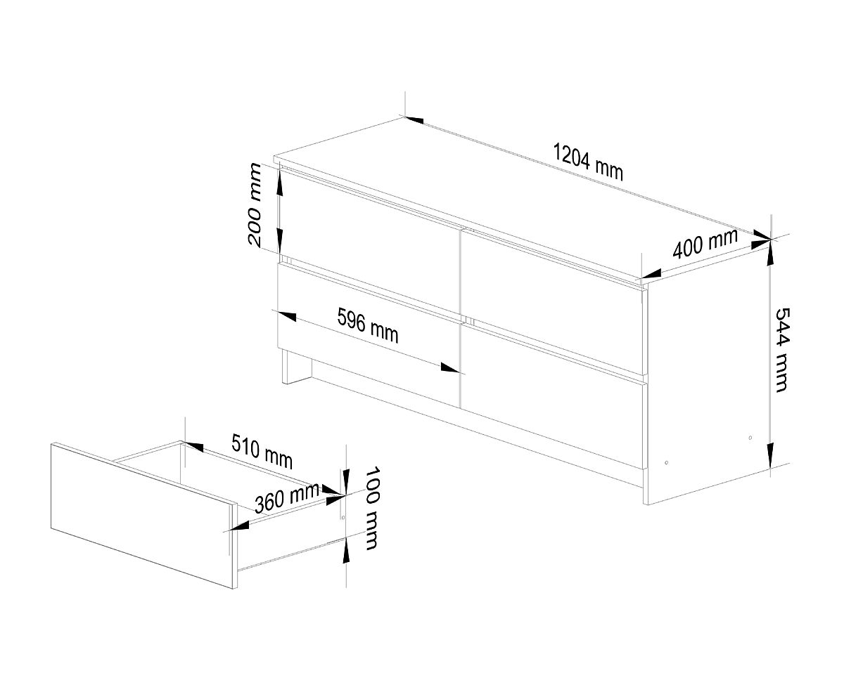 Bijela komoda s 4 ladice i ABS rubovima. .. više