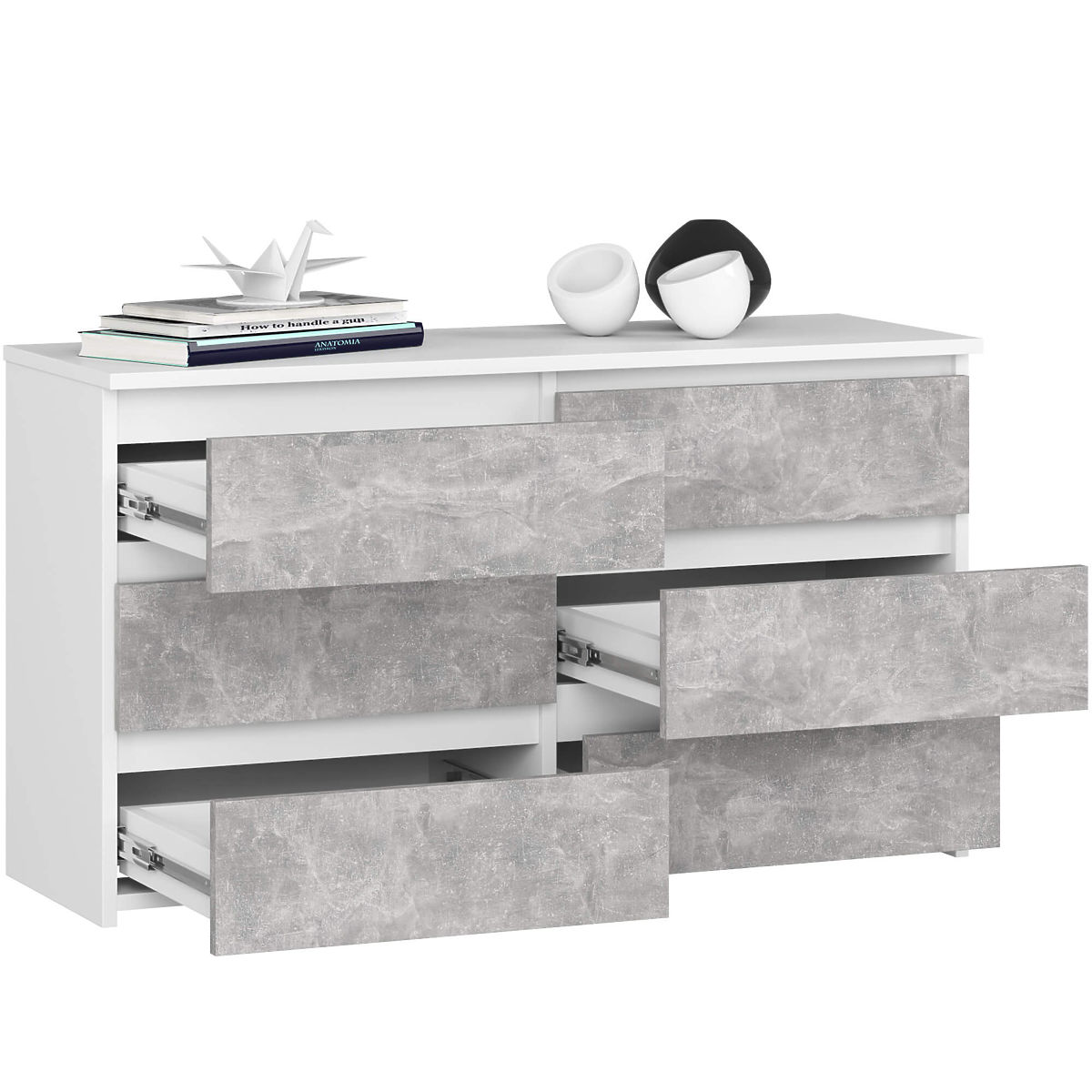 Komoda s 6 ladica u bijeloj i betonskoj boji, otporna na habanje. .. više