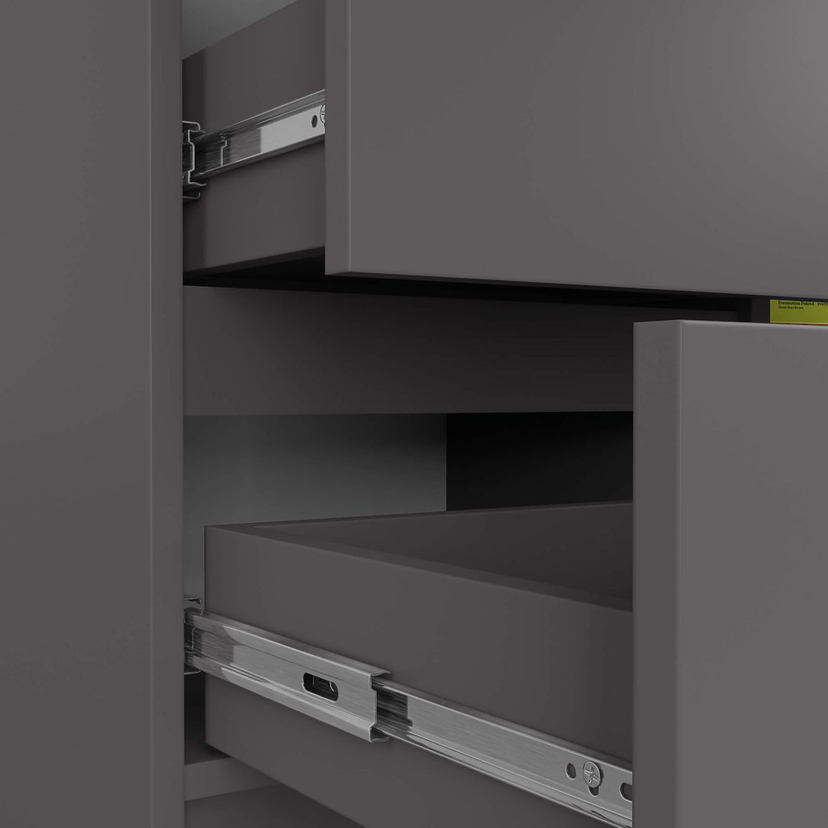 Mala komoda je element opreme koji će pronaći primjenu u svakoj prostoriji. Moderne boje, čvrsta konstrukcija i pažljiva izrada doveli su do stvaranja ormarića koji će se dokazati, primjerice, u hodniku, dnevnom ili mladenačkom sobi, ali i u spavaćoj sobi. Može se koristiti i u uredskom prostoru, gdje omogućuje pohranu brojnih dokumenata i drugih uredskih potrepština. Komoda se sastoji od jednih vrata (unutra su dvije police) i 3 ladice. Namještaj kombinira boju grafit siva.