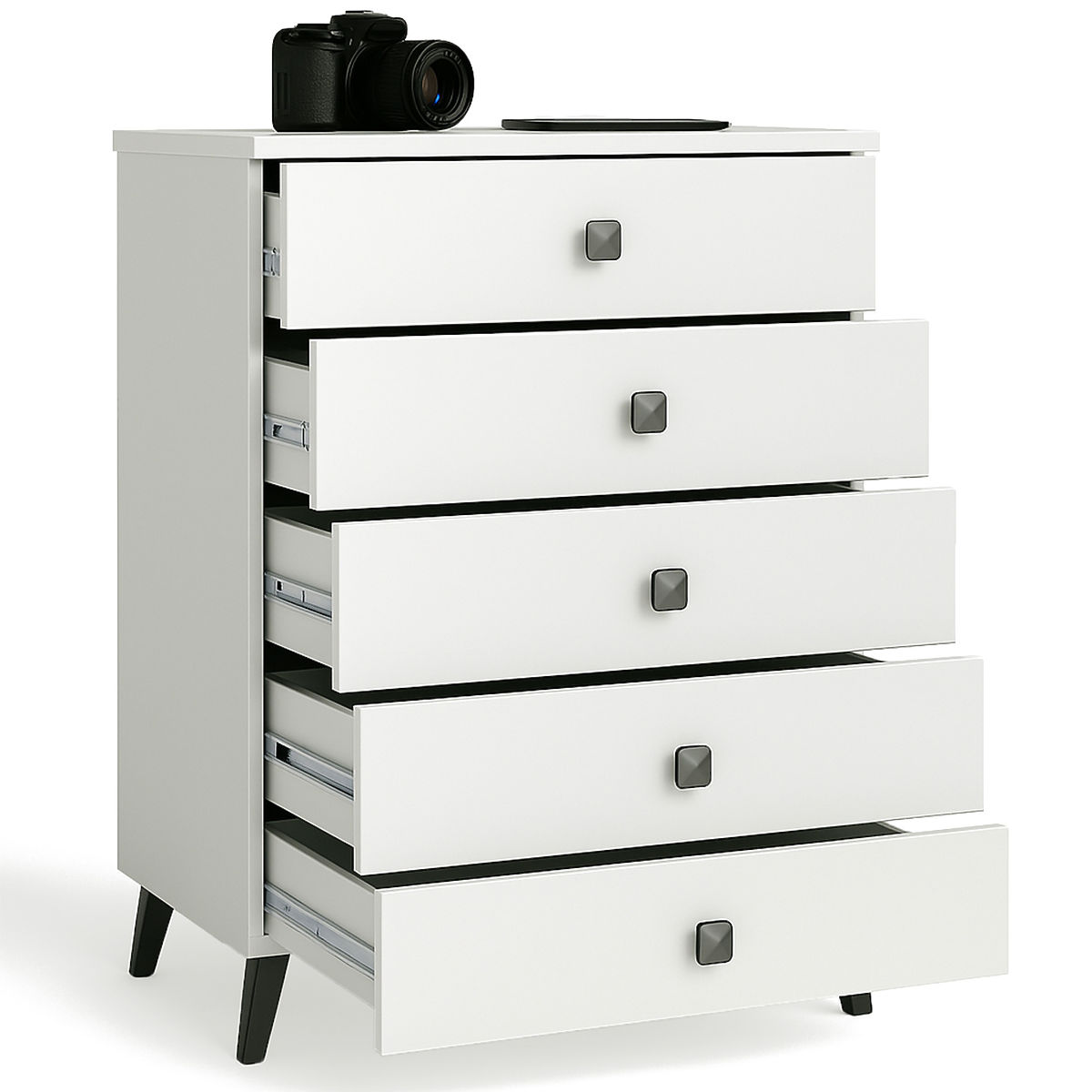 KOMODA MOBI 5 LADICA BIJELA CRNA