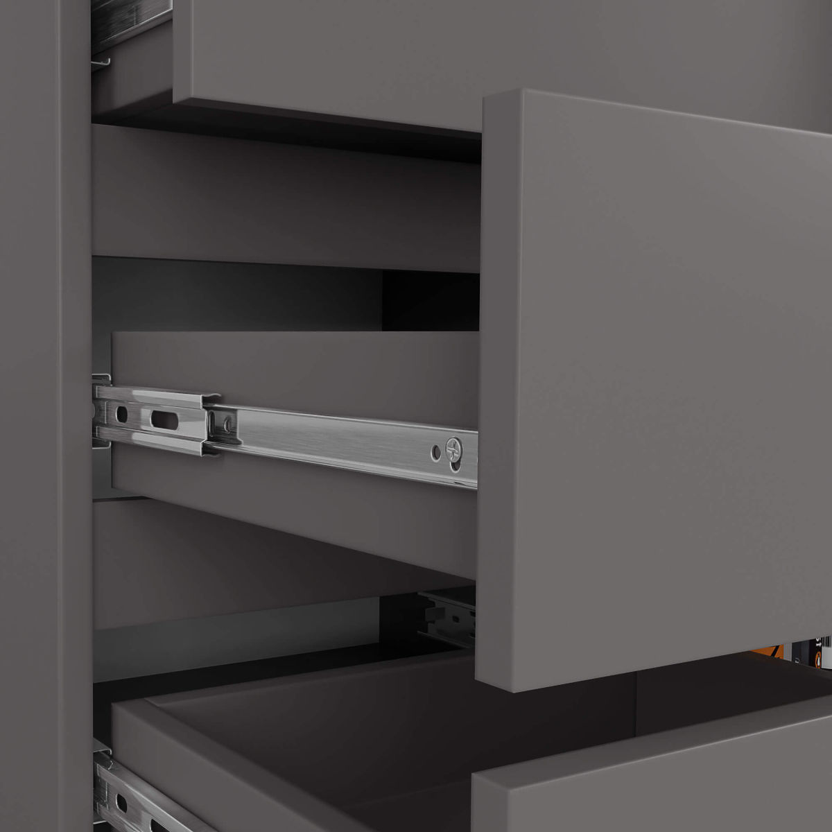Komoda je element opreme koji će pronaći primjenu u svakoj prostoriji. Moderne boje, čvrsta konstrukcija i pažljiva izrada rezultirali su ormarićem koji se može koristiti, na primjer, u hodniku, dnevnom boravku ili studentskoj sobi, ali i u spavaćoj sobi. Također se može koristiti u uredskim prostorima, gdje omogućuje pohranu mnogih dokumenata i drugih uredskih potrepština. Komoda se sastoji od jednih vrata (unutra su tri police) i 5 ladica. Namještaj kombinira boju grafitne sive.