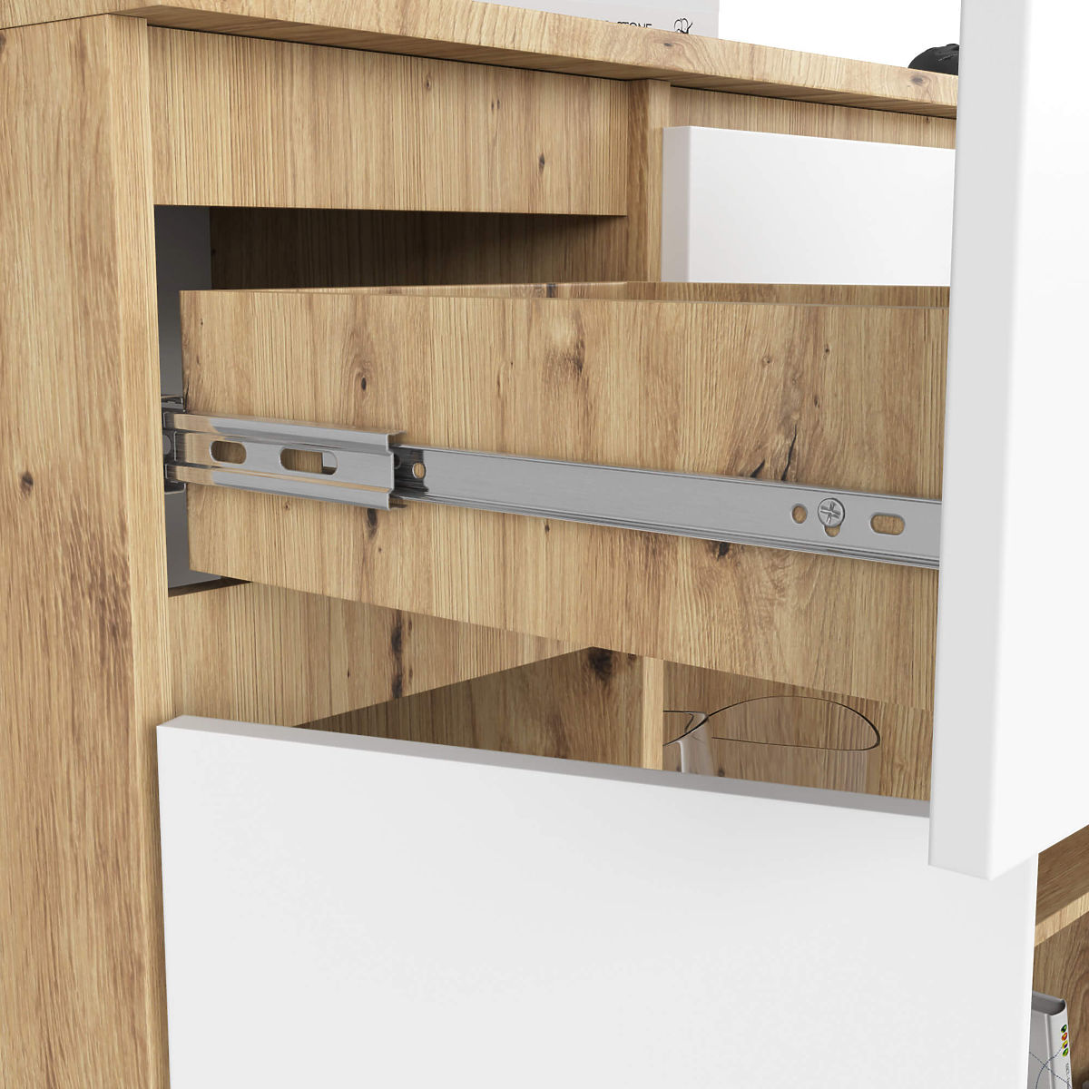 - Ladice se kreću na metalnim kugličnim vodilicama