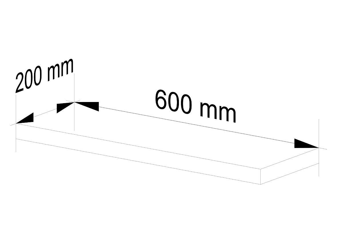 Nosač za namještaj 60 cm Izrađen od laminirane ploče otporne na habanje. Rubovi su prekriveni melaminom. Paket uključuje nevidljive zidne nosače.
