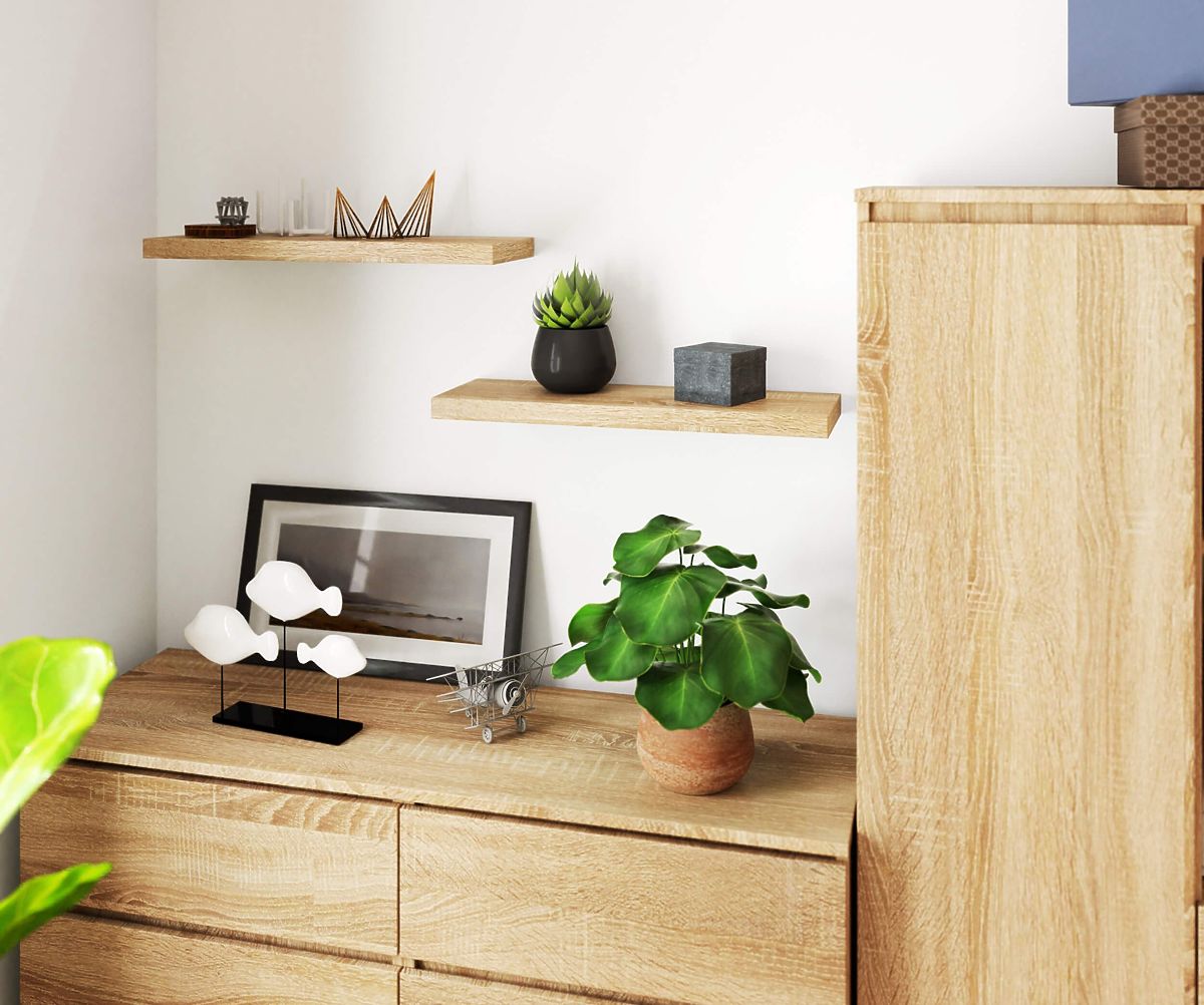 Zidna polica od laminirane ploče u boji hrasta Sonoma. .. više