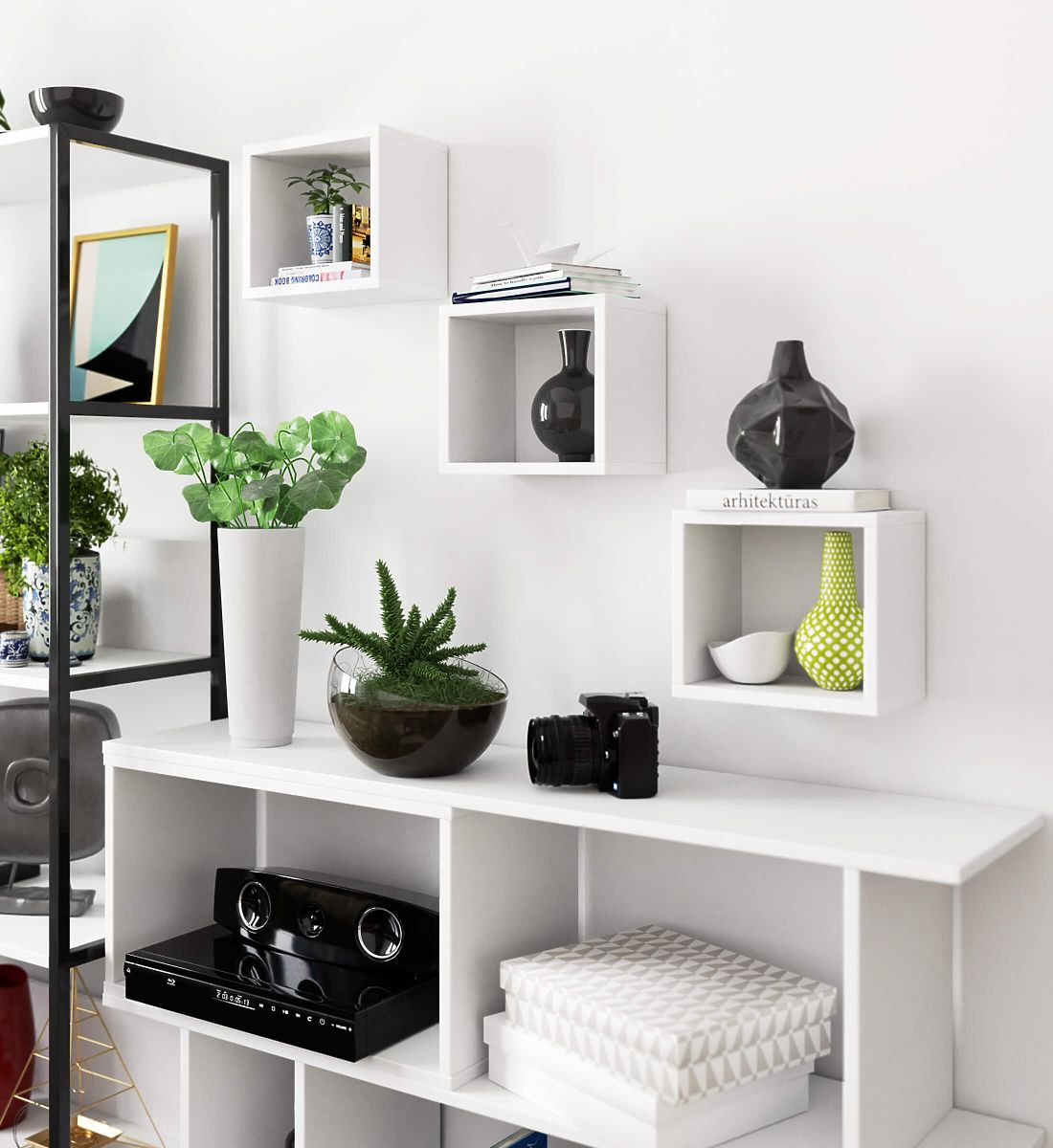 Bijele zidne police za dodatni prostor i dekoraciju. .. više
