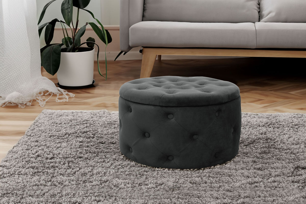 Tabure ili puf je izvrsni dodatak dnevnom boravku ili spavaćoj sobi. Zahvaljujući njemu, umorne noge nakon cijelog dana hodanja mogu se odmoriti, a ako je puf izrađen od mekog velura, to samo pojačava ugodan osjećaj odmora. Moderan izgled nadopunjuju prošivi koji dodaju elegantan stil. Otvorivi poklopac omogućuje pristup prostoru za pohranu, gdje možemo pohraniti predmete koji nisu potrebni za svakodnevnu upotrebu.Specifikacije: