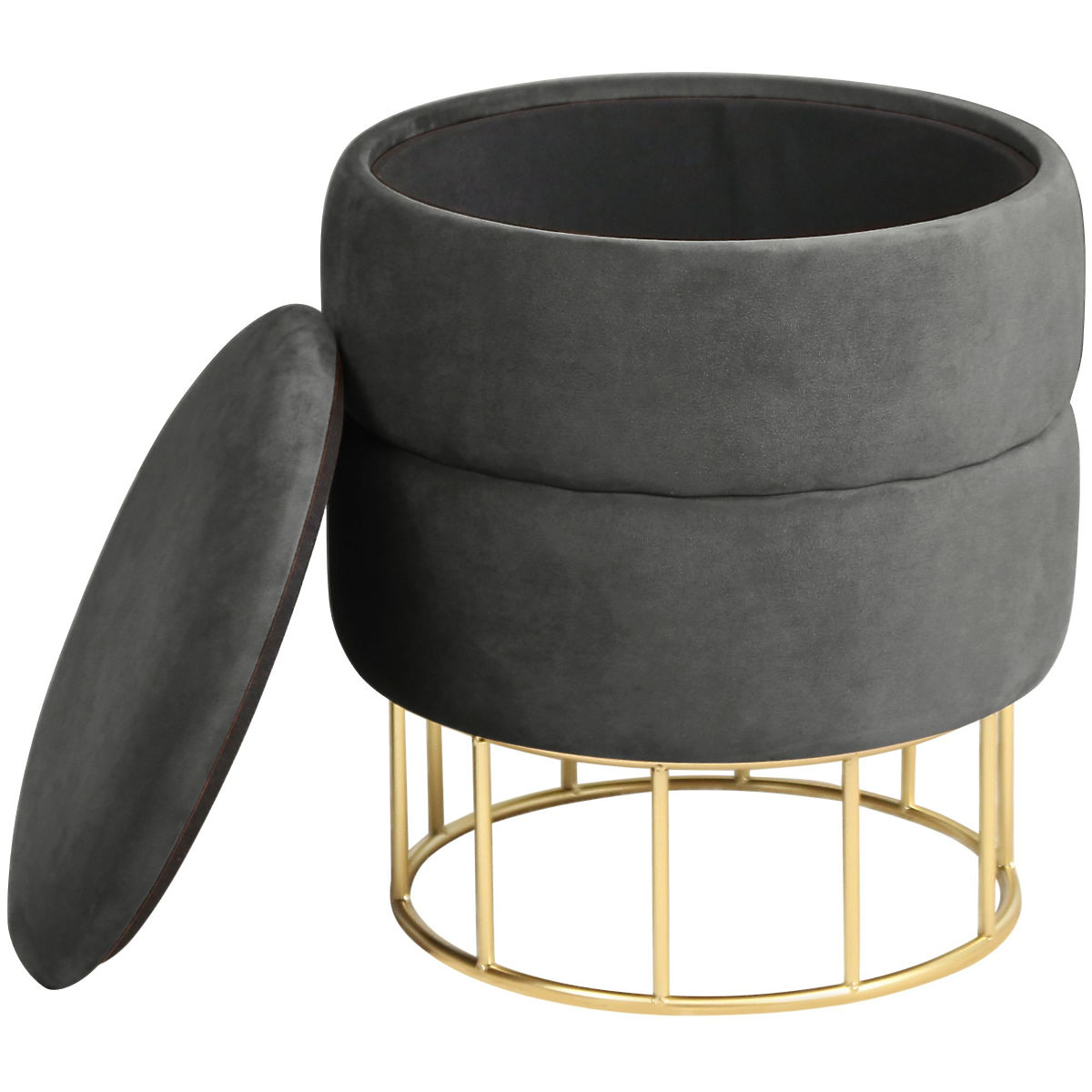 Puf s prostorom za pohranu na metalnoj bazi zlatne boje.