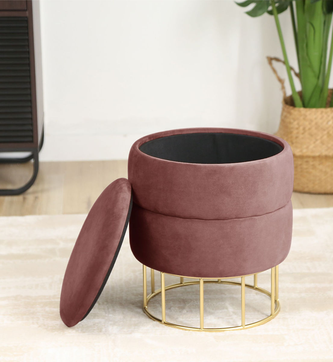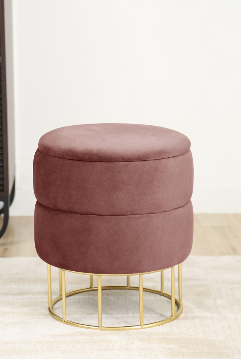 Puf s prostorom za pohranu na zlatnoj metalnoj bazi. .. više