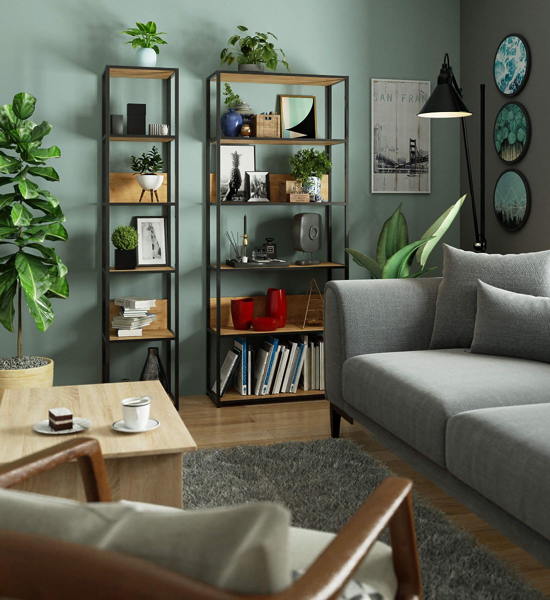 Metalna loft polica je praktičan i moderan komad namještaja koji se uklapa kako u dnevni boravak, tako i u ured. Polica s crnim metalnim okvirom i 6 polica u boji craft hrasta. Police su izrađene od laminirane ploče debljine 16 mm. To je izdržljiv i otporan materijal koji se odlikuje visokom otpornošću na habanje. Rubovi su dodatno zaštićeni ABS rubom, zahvaljujući čemu će namještaj izgledati dobro čak i uz vrlo intenzivnu svakodnevnu upotrebu. Polica je opremljena sa 6 polica na koje se mogu postaviti predmeti koje želimo izložiti ili imati pri ruci. Sveukupno djeluje vrlo stilski i moderno.
