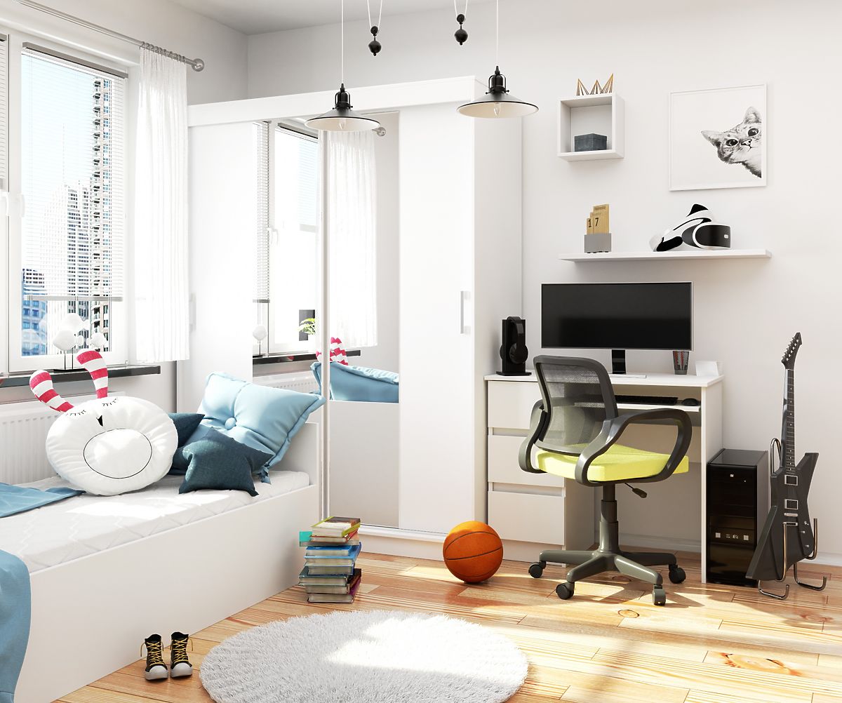 Univerzalan u svom izgledu, funkcionalan i osigurava dobru organizaciju odjeće, ormar opremljen kliznim vratima sigurno će ispuniti očekivanja kupaca koji vole kombinirati jednostavnost korištenja s trajnošću namještaja i otpornošću na oštećenja. Prezentiranom dizajnu lako se mogu dodati drugi elementi opreme iz iste kolekcije - police, komode ili pisaći stolovi. Zahvaljujući njima, sigurno će se stvoriti ugodan interijer opremljen praktičnim namještajem.