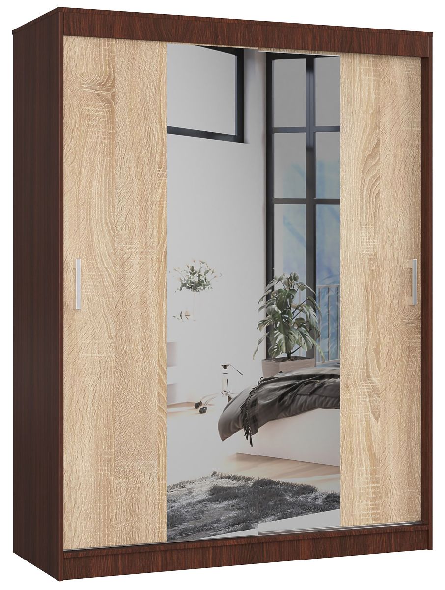 Veliki ormar s kliznim vratima lako će smjestiti svu odjeću, obuću, torbice i mnoge druge potrebne stvari u spavaćoj sobi ili predsoblju. Prezentirani model 150 cm CLP s ogledalom namijenjen je ljubiteljima uvijek popularne kombinacije boja wenge/sonoma. Namještaj se odlikuje visokom kvalitetom izrade od kvalitetnih, trajnih i izdržljivih materijala. To je prijedlog koji se može slobodno koristiti ne samo u stambenom prostoru, već i, na primjer, u uredu. Ormar se najčešće koristi u spavaćim sobama, gdje omogućuje pohranu prvenstveno odjeće - kako na brojnim policama, tako i na praktičnoj šipki.