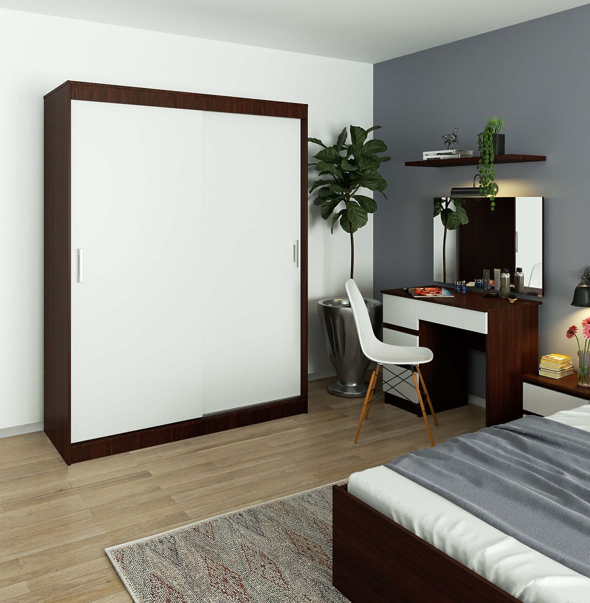 Koji su ormari popularni? Oni koji su prostrani i funkcionalni, a istovremeno estetski obrađeni. Ove uvjete ispunjava klizni ormar 150 cm CLP u boji wenge i bijeloj iz naše ponude. Namijenjen je za dvije osobe. Odlično se uklapa u spavaću sobu, dnevni boravak ili garderobu. U njemu možete pohraniti ne samo odjeću, već i tekstil. To je prostrani namještaj koji pomaže održavati red u sobi.