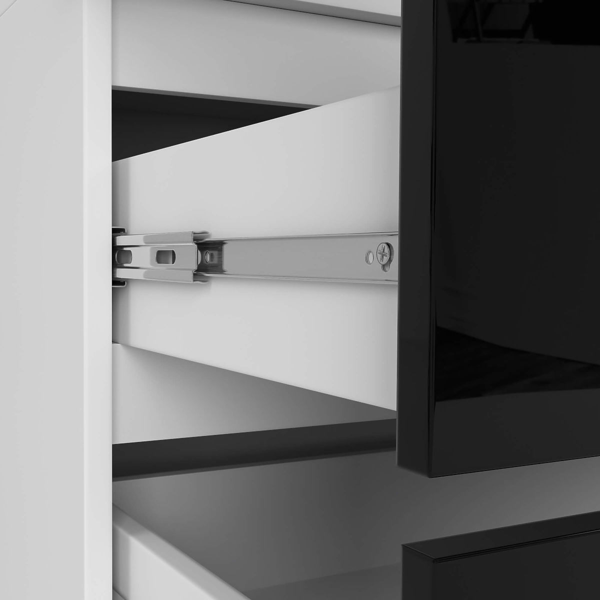 Boja namještaja: bijela, prednje plohe crni sjaj