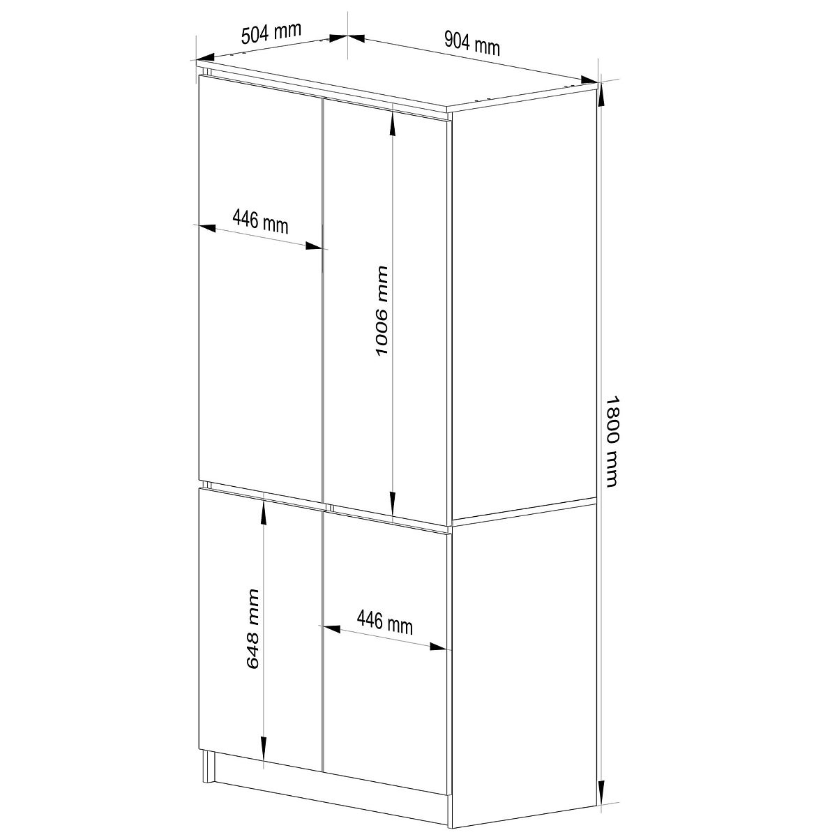Četverovratni ormar je univerzalan i praktičan komad namještaja koji će odlično upotpuniti opremu spavaće sobe, hodnika ili dnevnog boravka u interijerima tipa studio. Elegantna izvedba i bijela boja osiguravaju da se ormar idealno uklapa u klasične i moderne aranžmane. Ormar je opremljen prostranim policama koje su idealne za pohranu odjevnih predmeta ili zamjenskih navlaka za pokrivače i jastuke, plahti, stolnjaka ili deka. U dijelu namještaja smještenom iza preklopnih vrata nalazi se šipka za vješalice. Police se mogu koristiti za džempere, bluze, torbe, ali i primjerice za ručnike. S druge strane, šipka će poslužiti kao mjesto za vješanje odijela, haljina, suknji i gornje odjeće, kao što su kaputi ili jakne. Namještaj se odlikuje pažljivom izradom od najkvalitetnije laminirane ploče koja je otporna na habanje. Rubovi ormara završeni su estetskim ABS rubom.