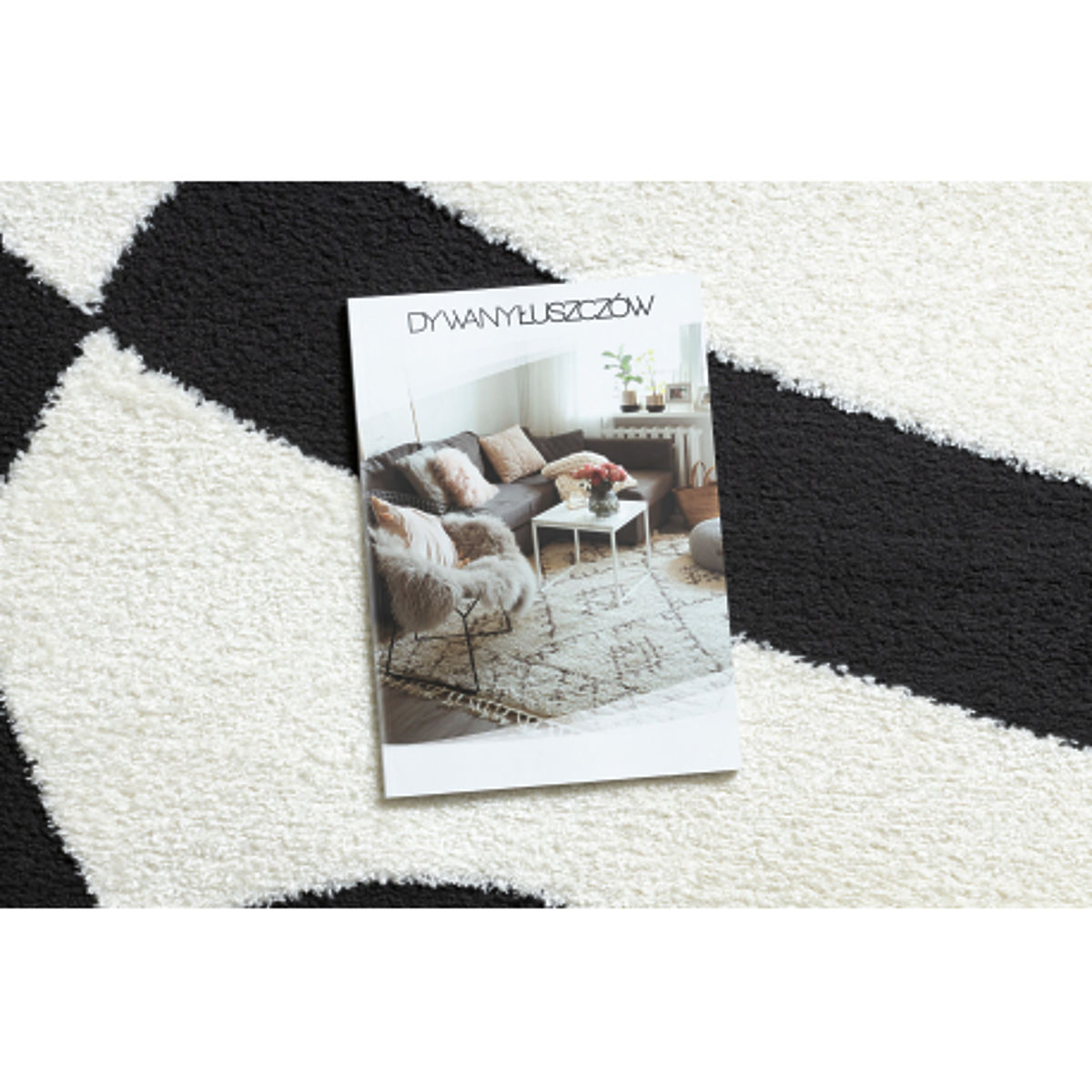 Pravokutni tepih s apstraktnim uzorkom u krem i crnoj boji. .. više