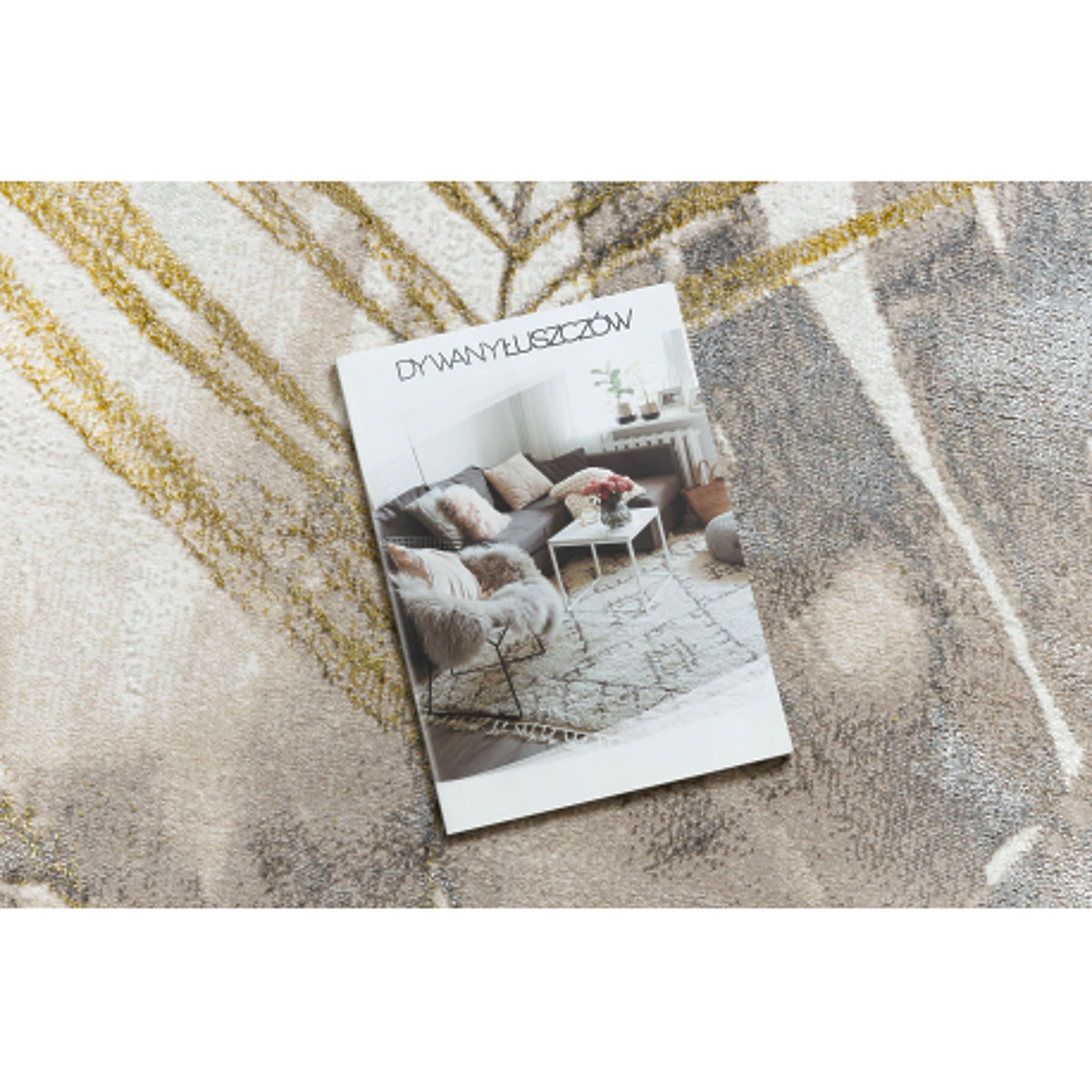 Tepih s motivom palmovi listova u krem i zlatnoj boji. .. više