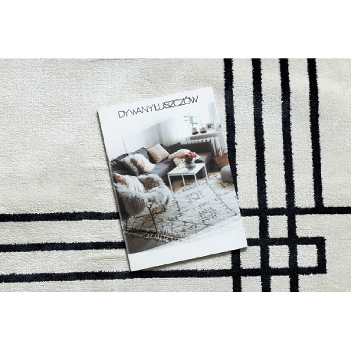 Tepih AMOUR 53096C u krem boji s modernim okvirnim motivom. .. više