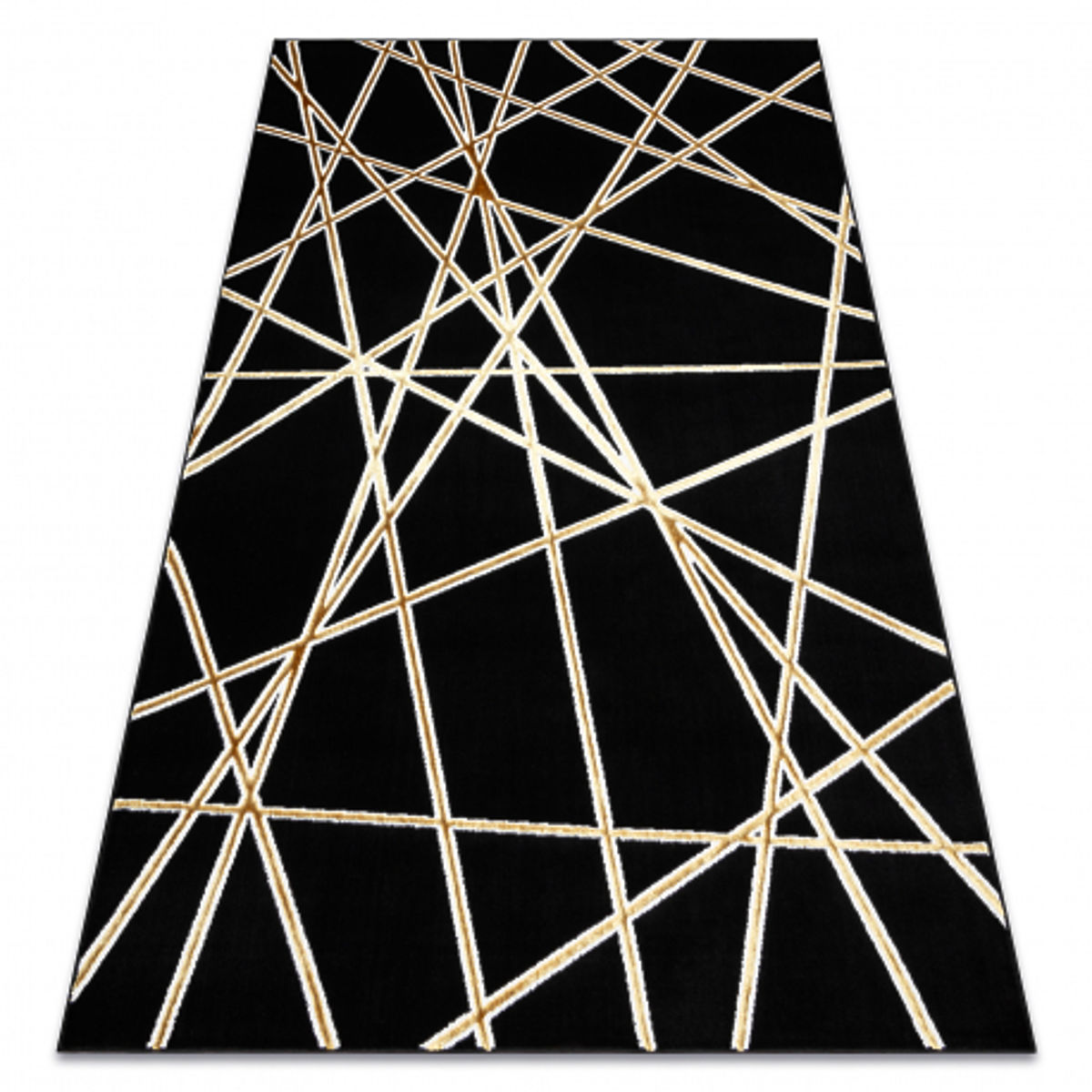 Tepih s geometrijskim uzorkom u crnoj i zlatnoj boji. .. više