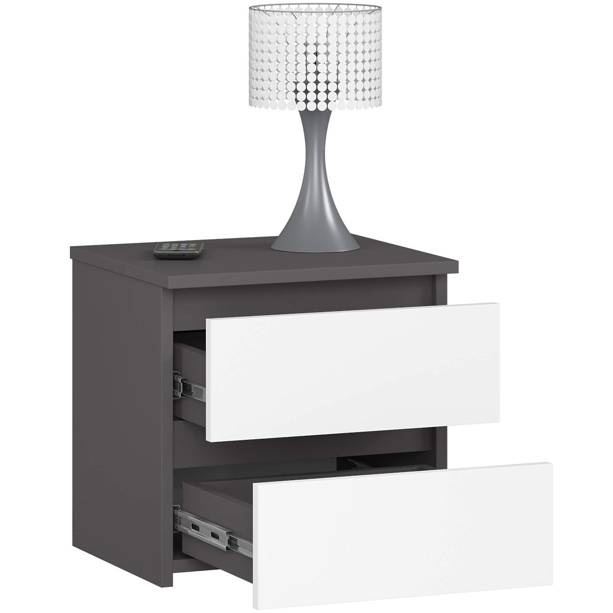 Noćni ormarić s 2 ladice u grafit sivoj i bijeloj boji. .. više