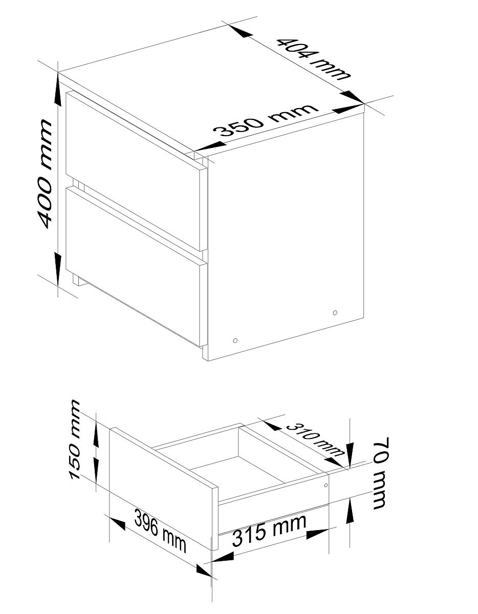 Noćni ormarić CL2 40 cm u boji hrast craft s dvije ladice. .. više