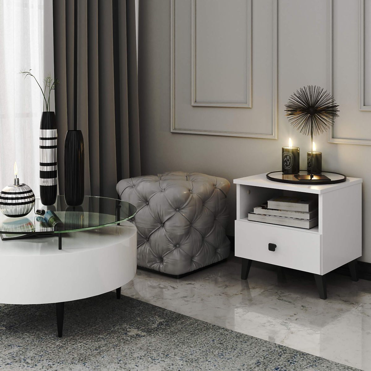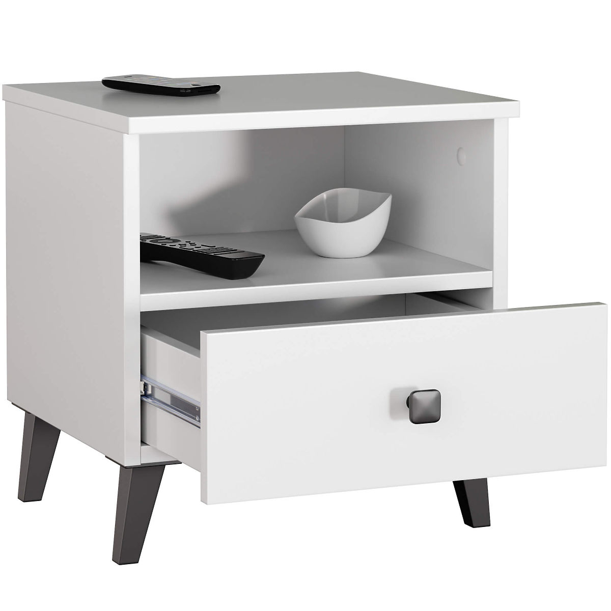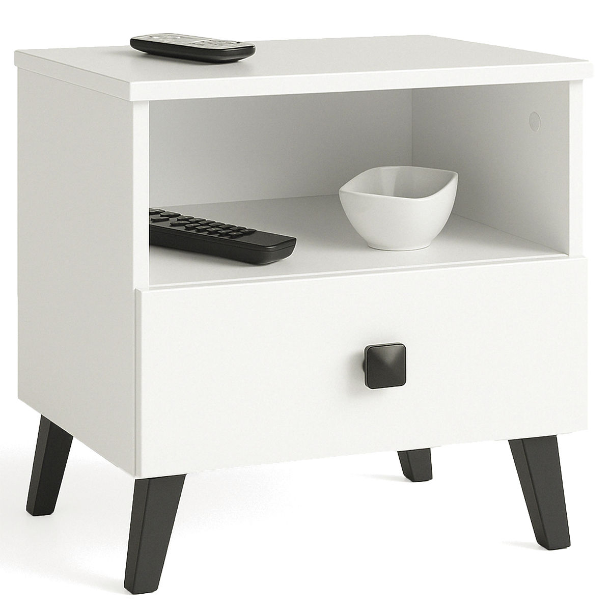 Noćni ormarić MOBI K01 s ladicom i policom u bijeloj i crnoj boji. .. više