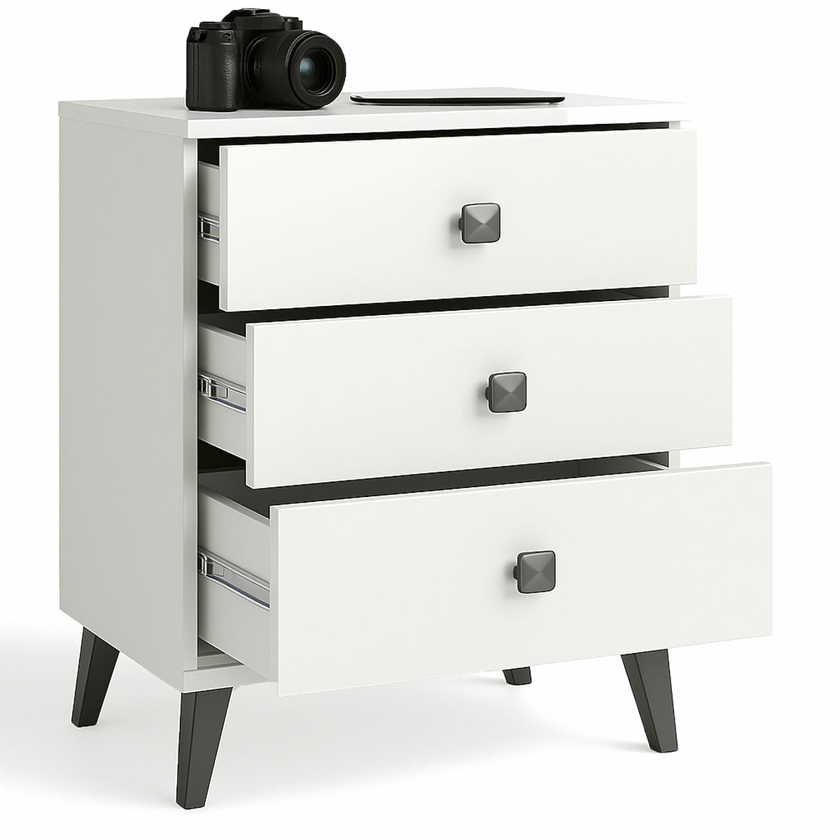 NOĆNI ORMARIĆ MOBI 3 LADICE BIJELI CRNI