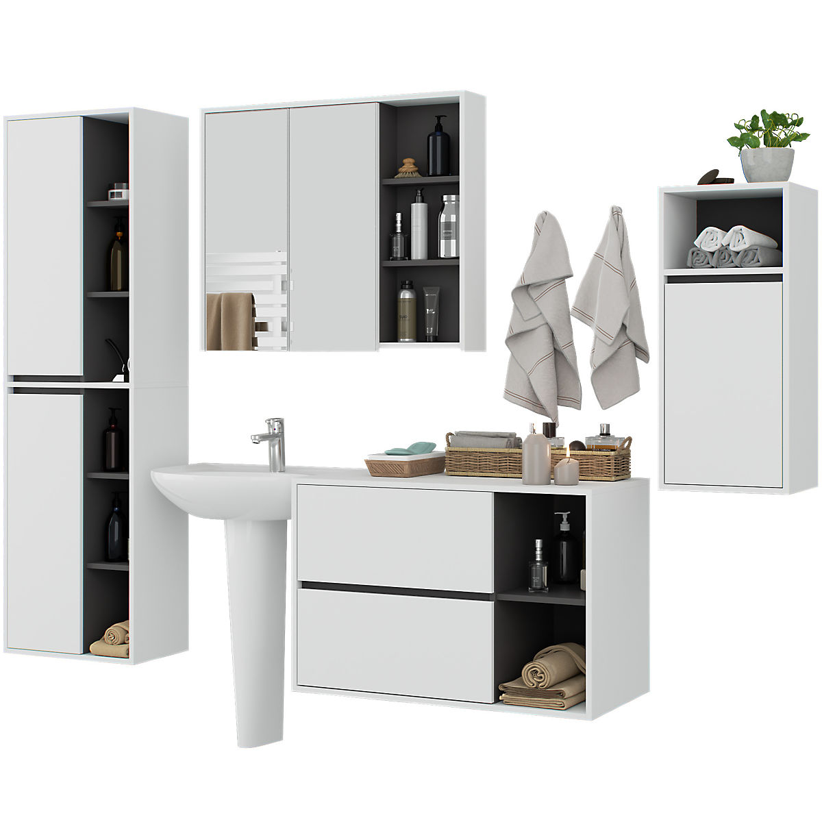 Lukahome.hr » Kupaonica i WC / Kupaonski setovi / SET VISEĆEG KUPAONSKOG NAMJEŠTAJA VAMI BIJELA / GRAFITNO SIVA