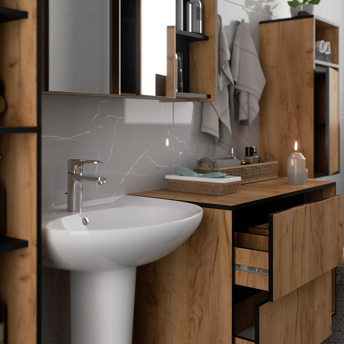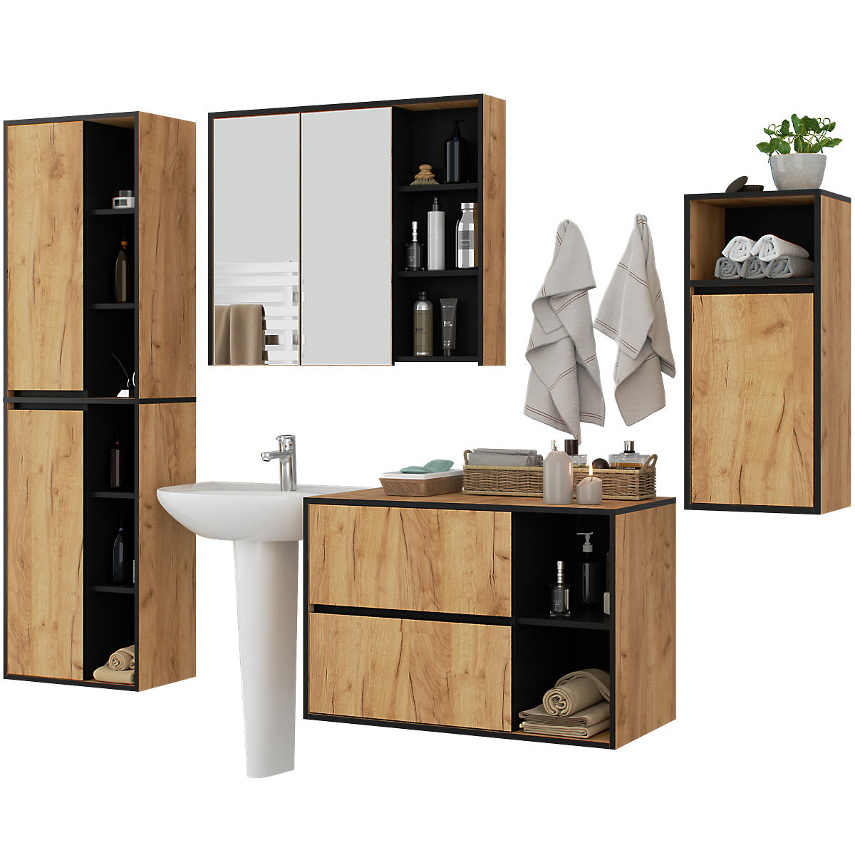 Lukahome.hr » Kupaonica i WC / Kupaonski setovi / SET VISEĆEG KUPAONSKOG NAMJEŠTAJA VAMI HRAST CRAFT / CRNA