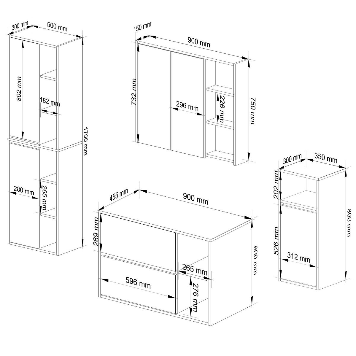 Ormarići su neovisni, tako da se mogu rasporediti u bilo kojoj konfiguraciji i udaljenostima prema vašim potrebama. Cijena se odnosi samo na kupaonske ormariće, dekorativni elementi nisu uključeni u set.