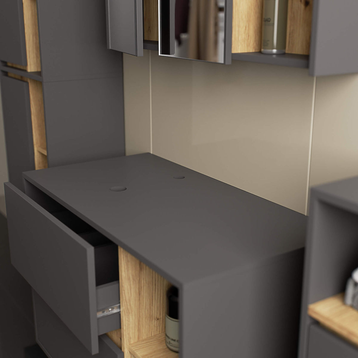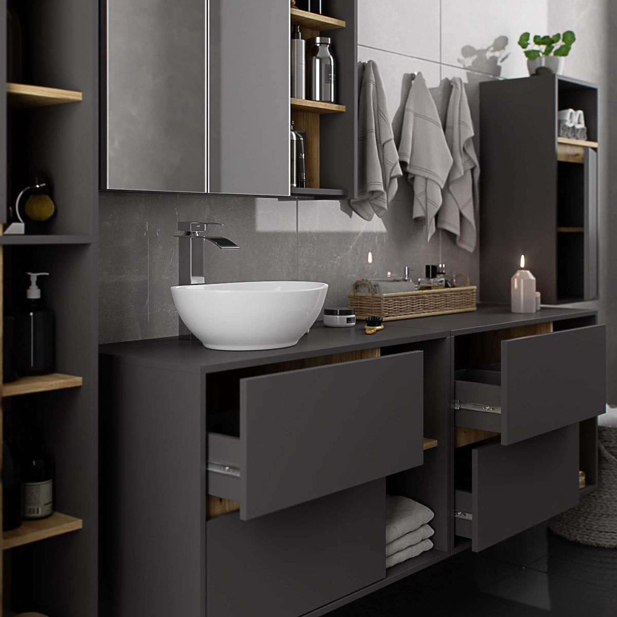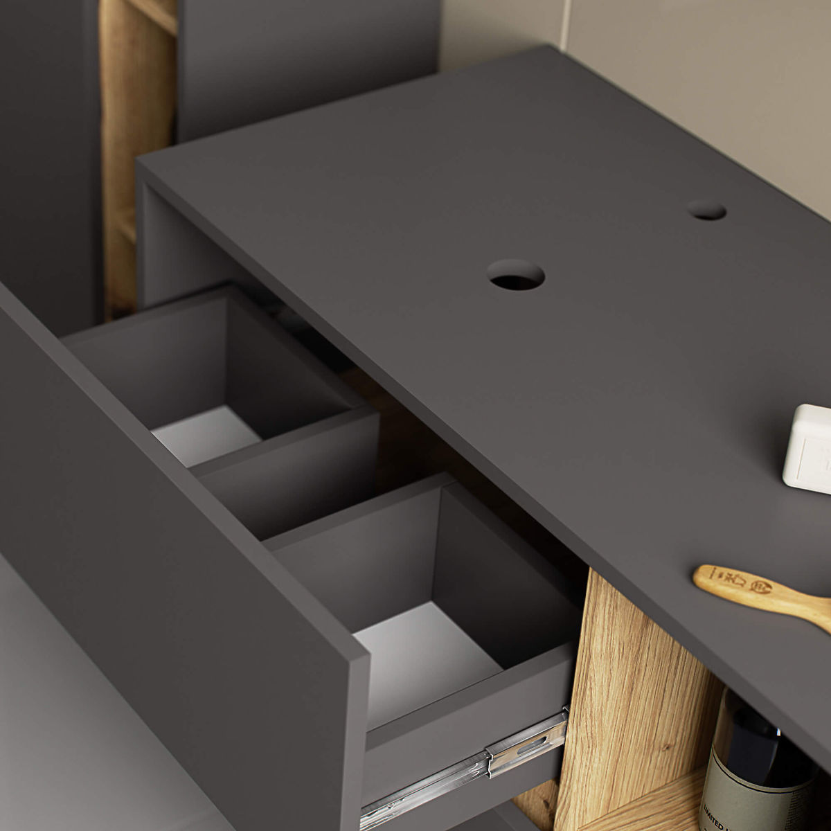 Lukahome.hr » Kupaonica i WC / Kupaonski ormarići / KUPAONSKI ORMARIĆ ISPOD UMIVAONIKA S OTVORIMA VAMI W90 UM 2SZ 2P GRAFIT SIVA / HRAST ARTISAN