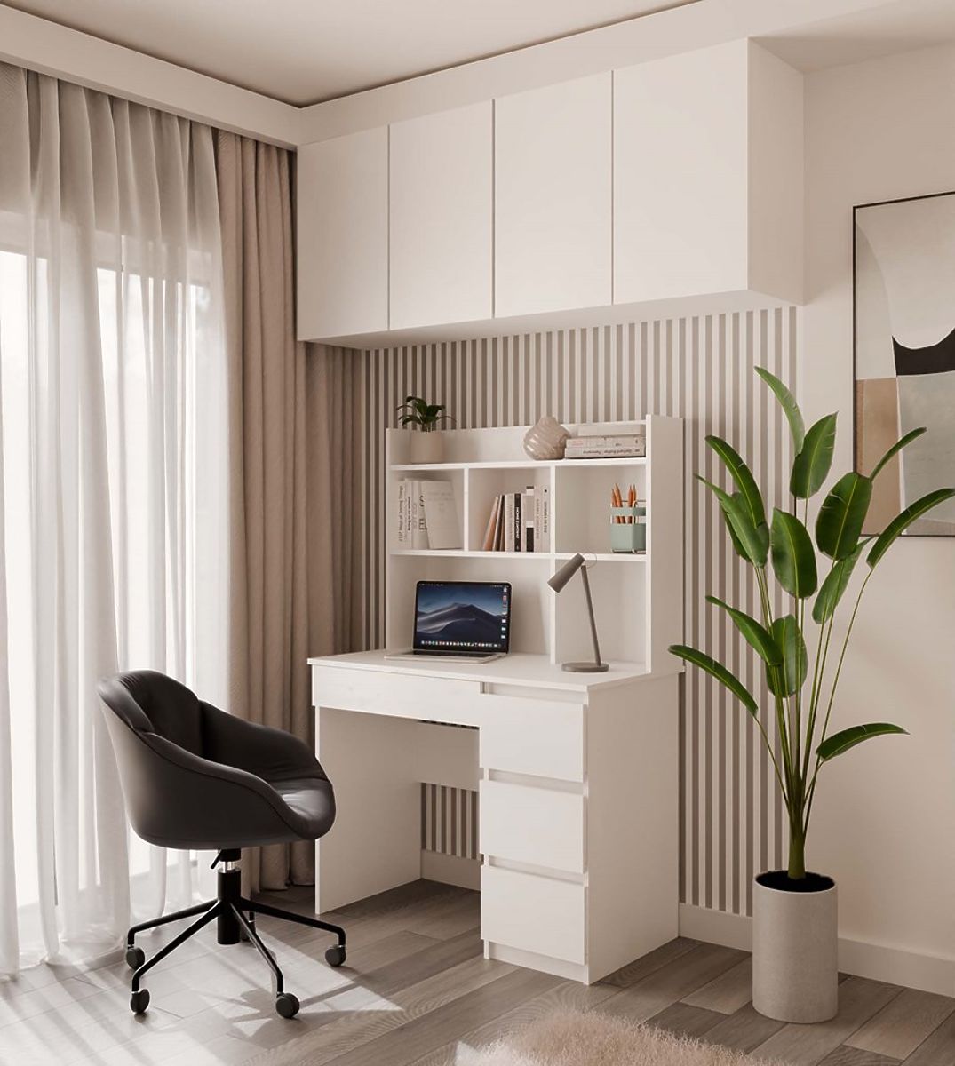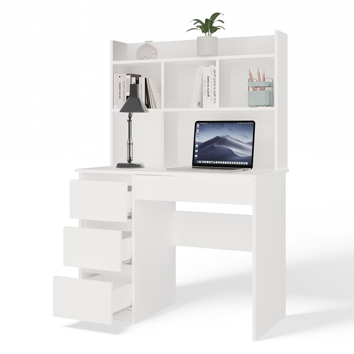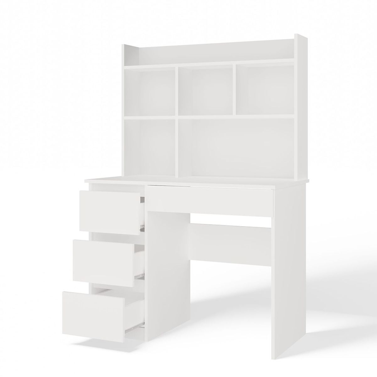 Lukahome.hr » Tablice i stolovi / Pisanje stolovi / Radni stol MIJAS lijevi s nadgradnjom bijela mat 4 ladice 4 police za ured ili sobu