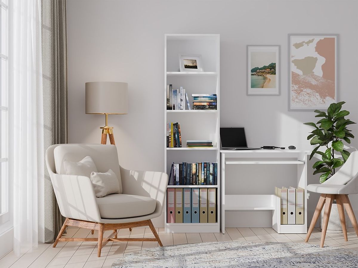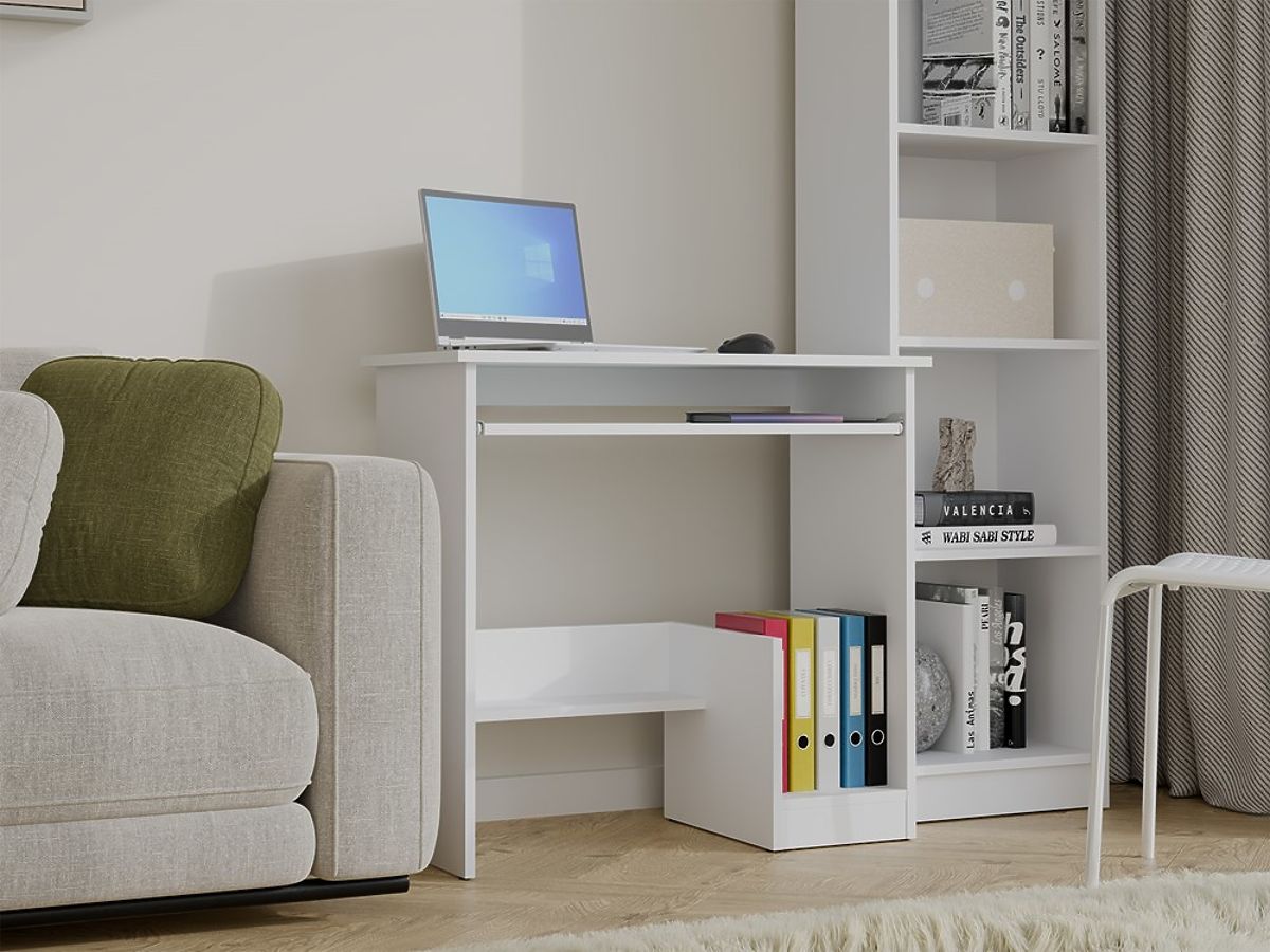 Namještaj je opremljen praktičnim rješenjima koja povećavaju udobnost rada: udobna izvlačna polica za tipkovnicu, mjesto za centralnu jedinicu računala ili registratore te dodatna donja polica za pohranu.