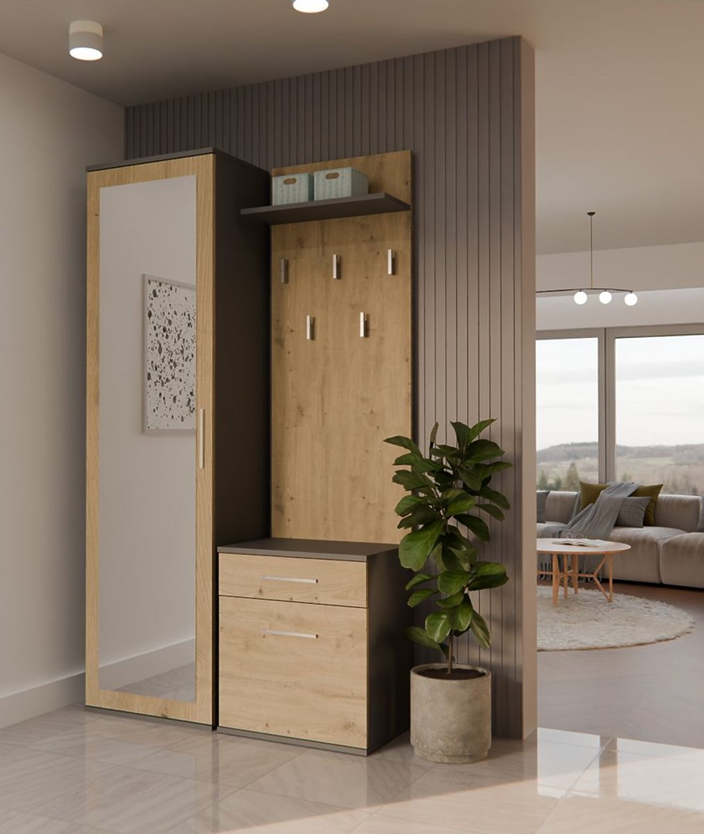 Ormar s ogledalom, ormarić i vješalica mogu se postaviti blizu ili odvojeno.