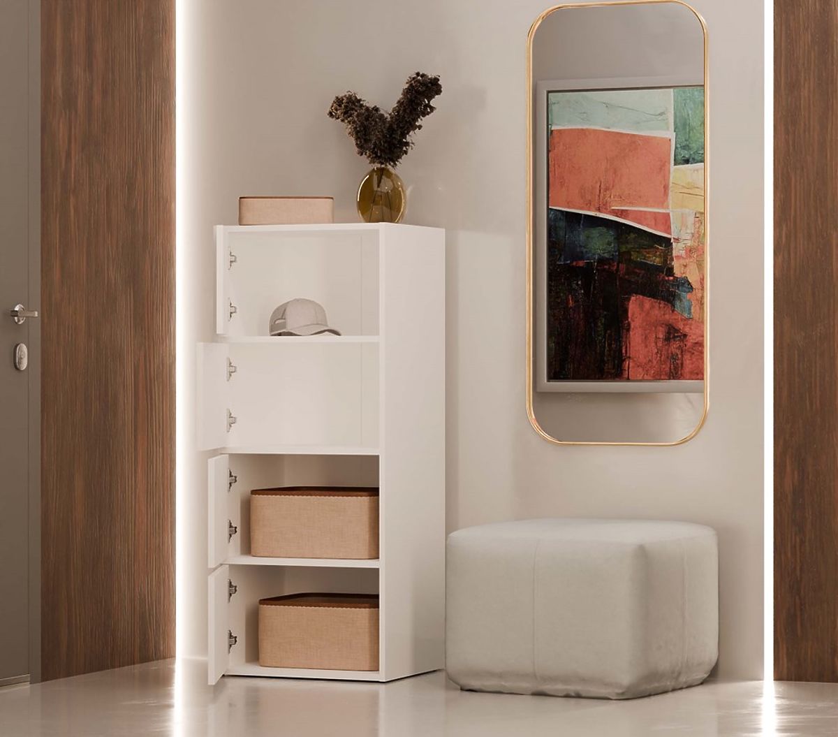 Bijela komoda ALMA s 4 vrata i policama za pohranu. .. više