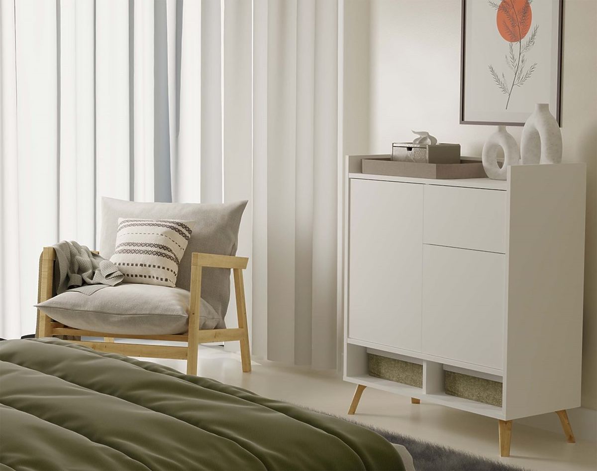 Komoda Colin u bijeloj boji je savršena kombinacija funkcionalnosti i moderne estetike, idealna za svijetle i prostrane interijere.