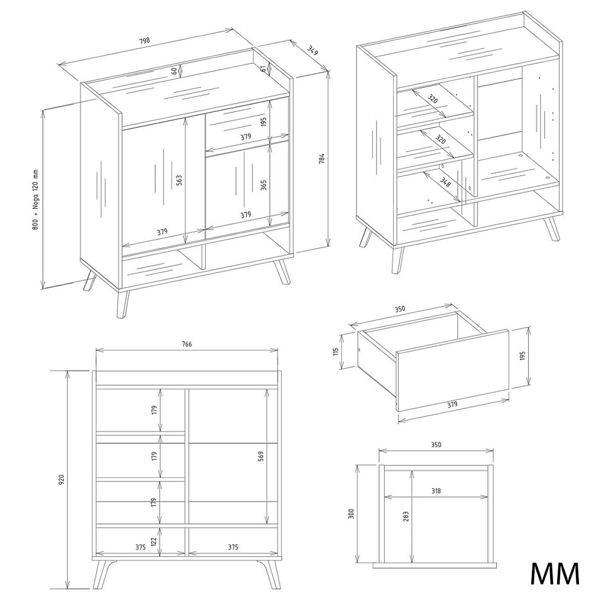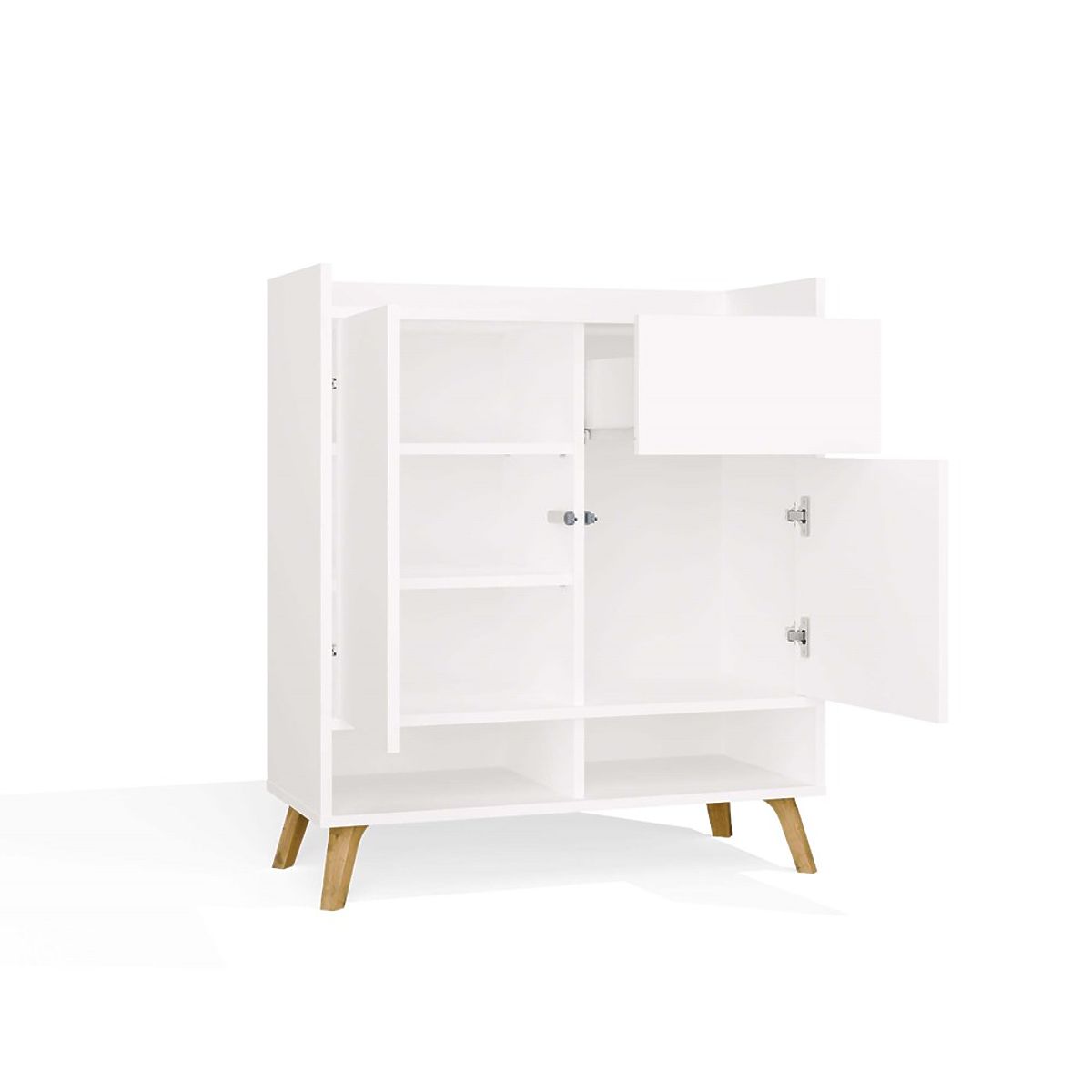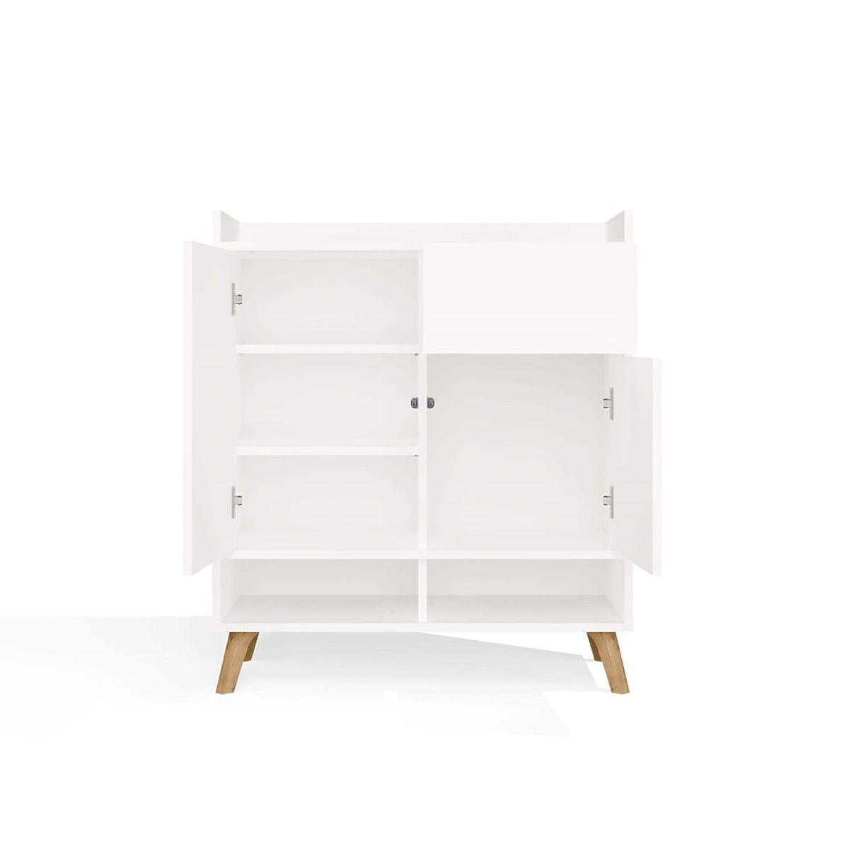 Jednostavan oblik, frontovi bez ručki i visoke noge u skandinavskom stilu daju komodi lakoću i moderan karakter.