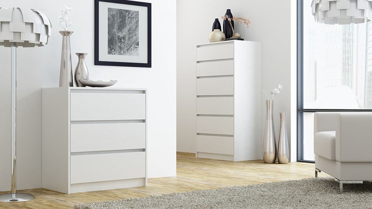 Moderna komoda iz kolekcije KARO je funkcionalan i prostran namještaj koji će urediti interijer vaše spavaće sobe, dnevnog boravka ili dječje sobe.