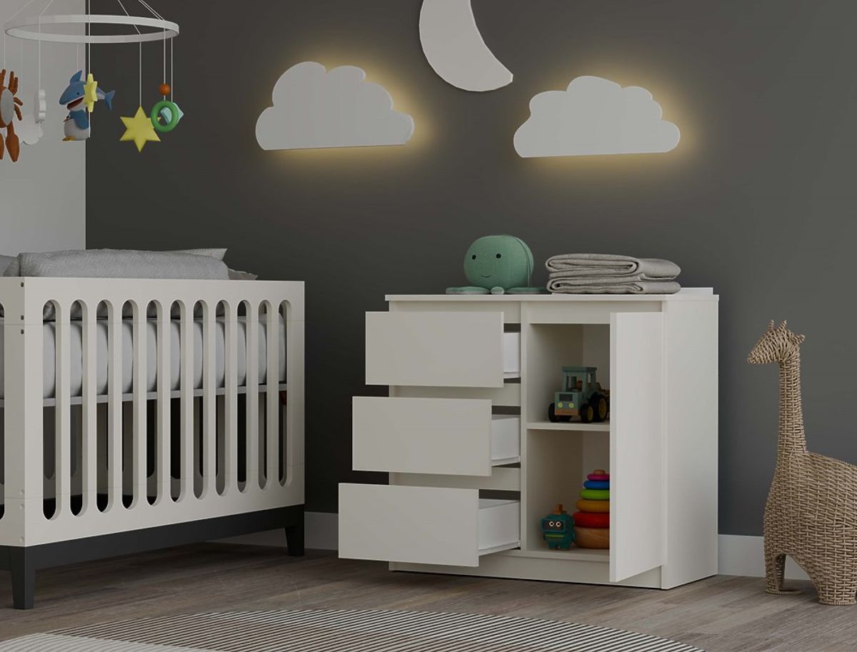Komoda 1D3S je stilski i praktičan namještaj, koji se savršeno uklapa u spavaću sobu, dnevni boravak, hodnik ili dječju sobu. Zahvaljujući promišljenom rasporedu s jednim vratima i tri prostrane ladice, omogućuje udobno pohranjivanje i organizaciju prostora.