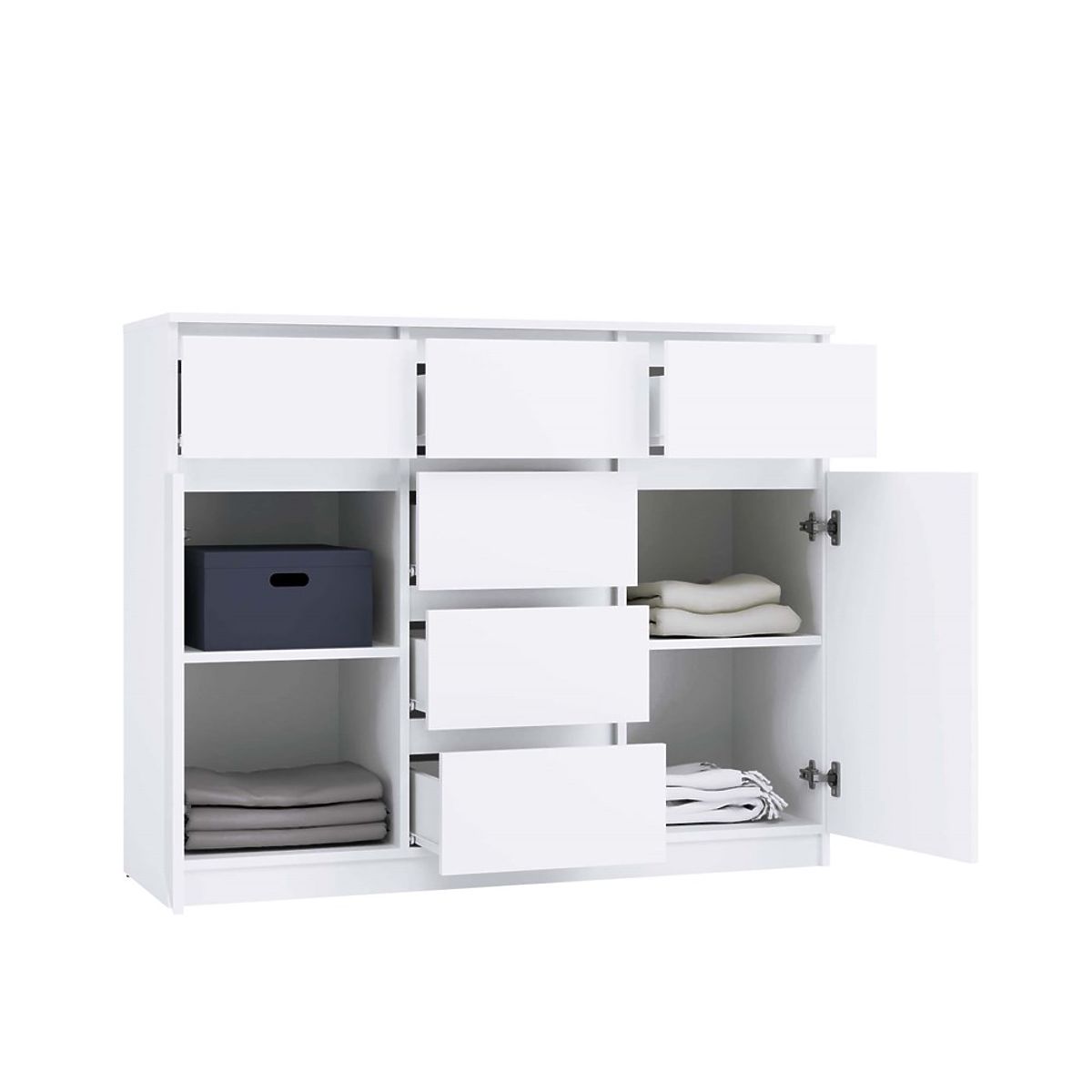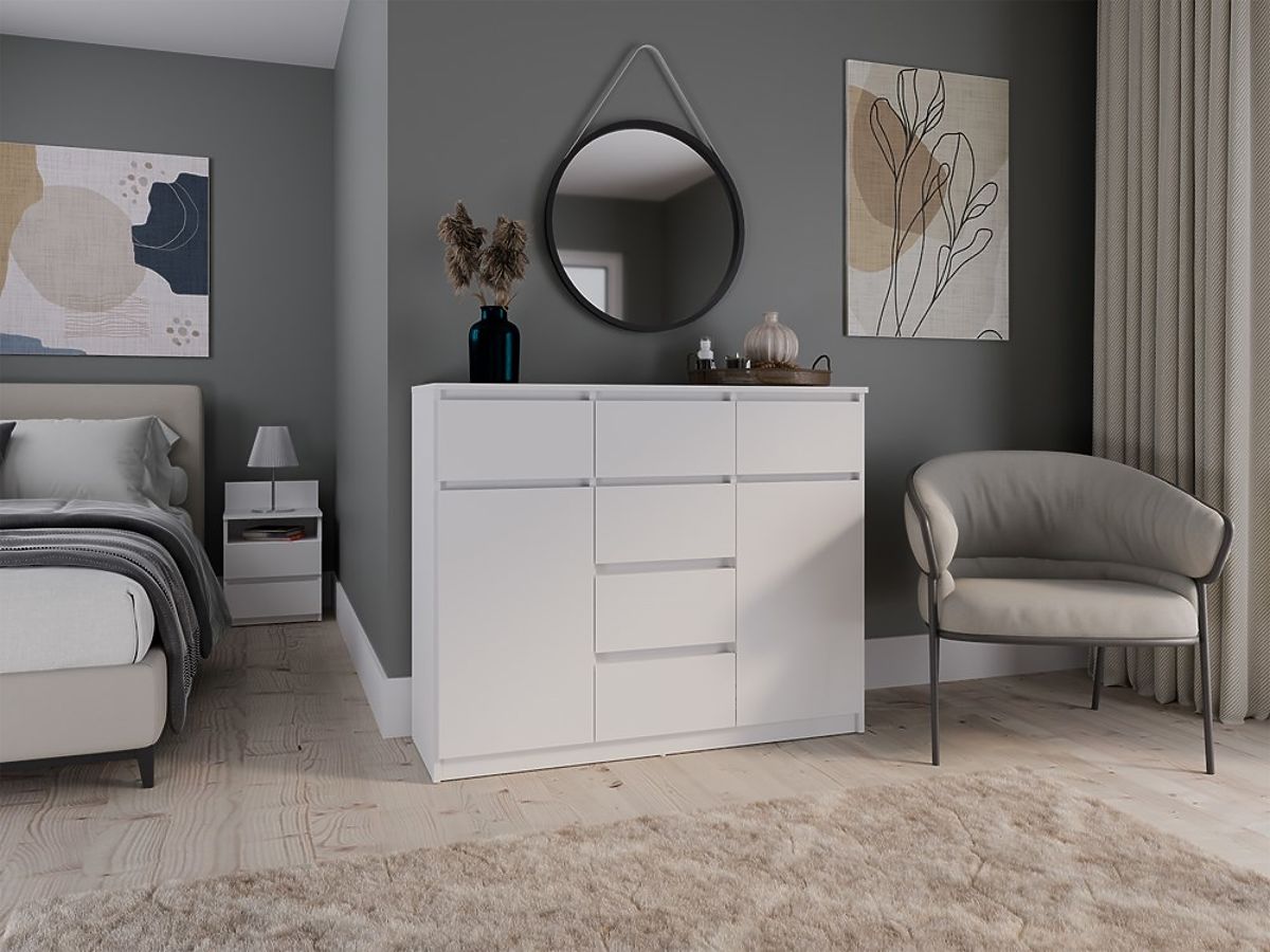 Moderna komoda s 2 vrata i 6 ladica u bijeloj boji. .. više