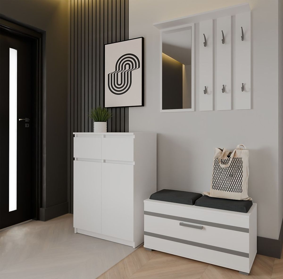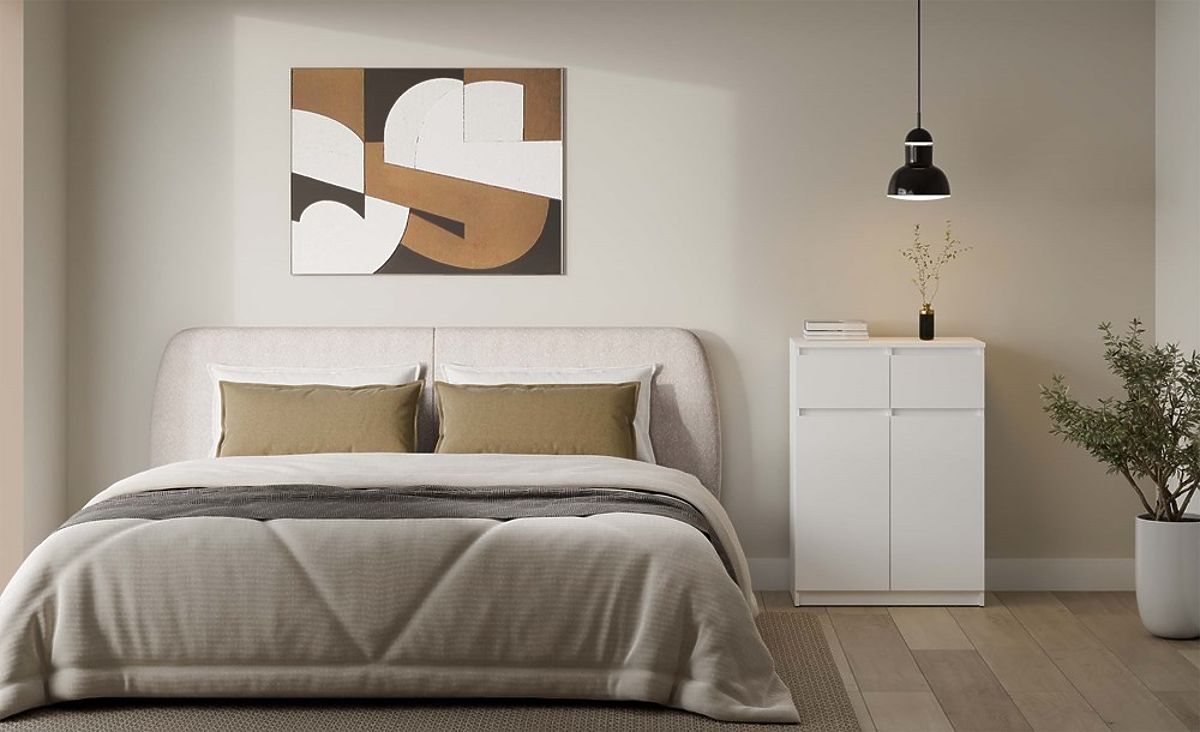 Komoda 2DD2S u bijeloj boji s 2 vrata i 2 ladice za prostrano pohranjivanje. .. više